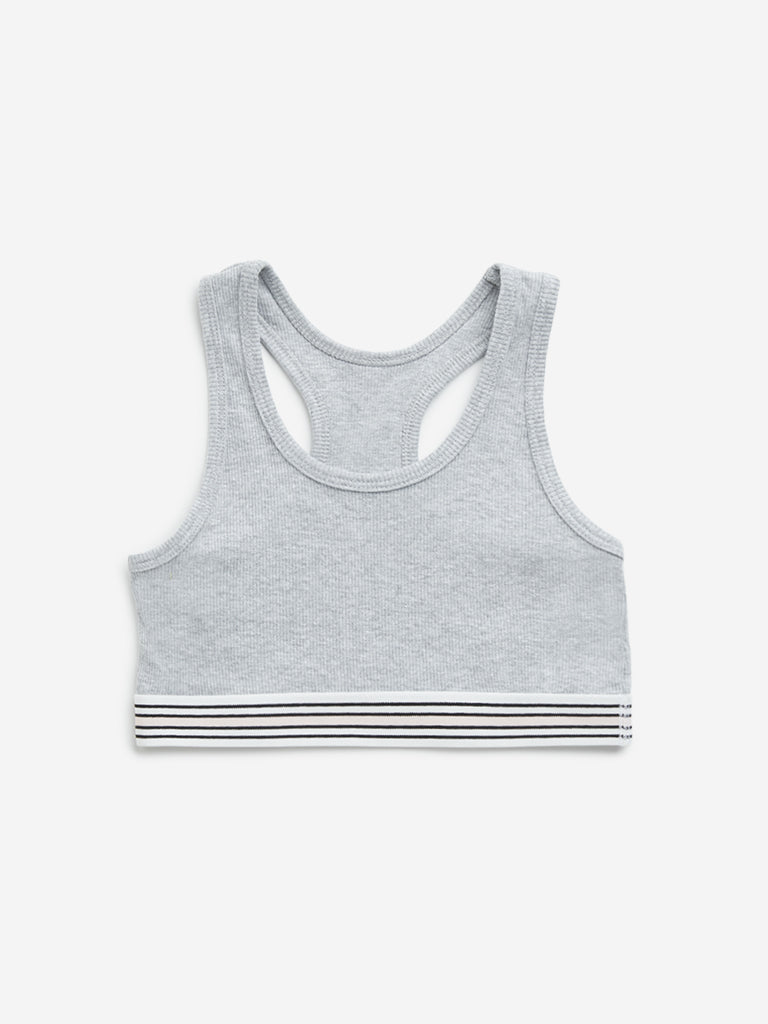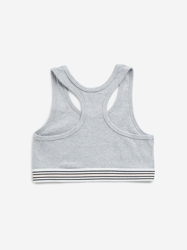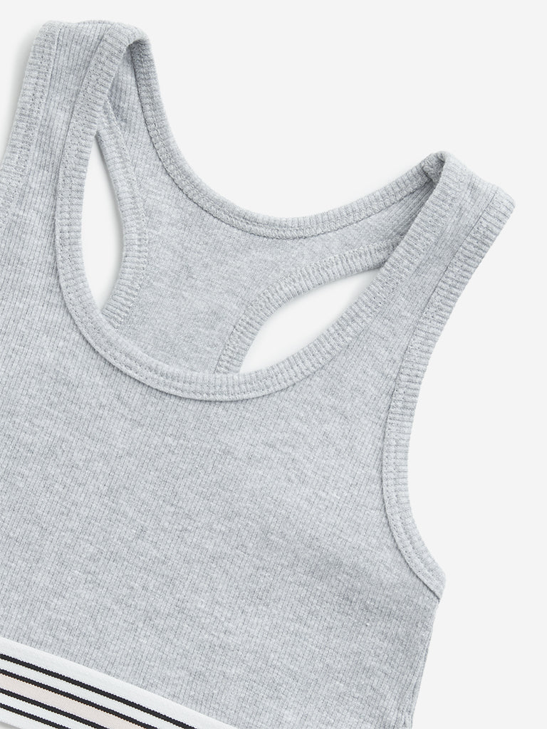 Y&F Kids Grey Ribbed Textured Cotton Blend Crop Top