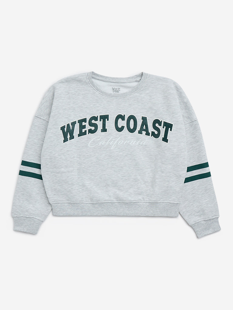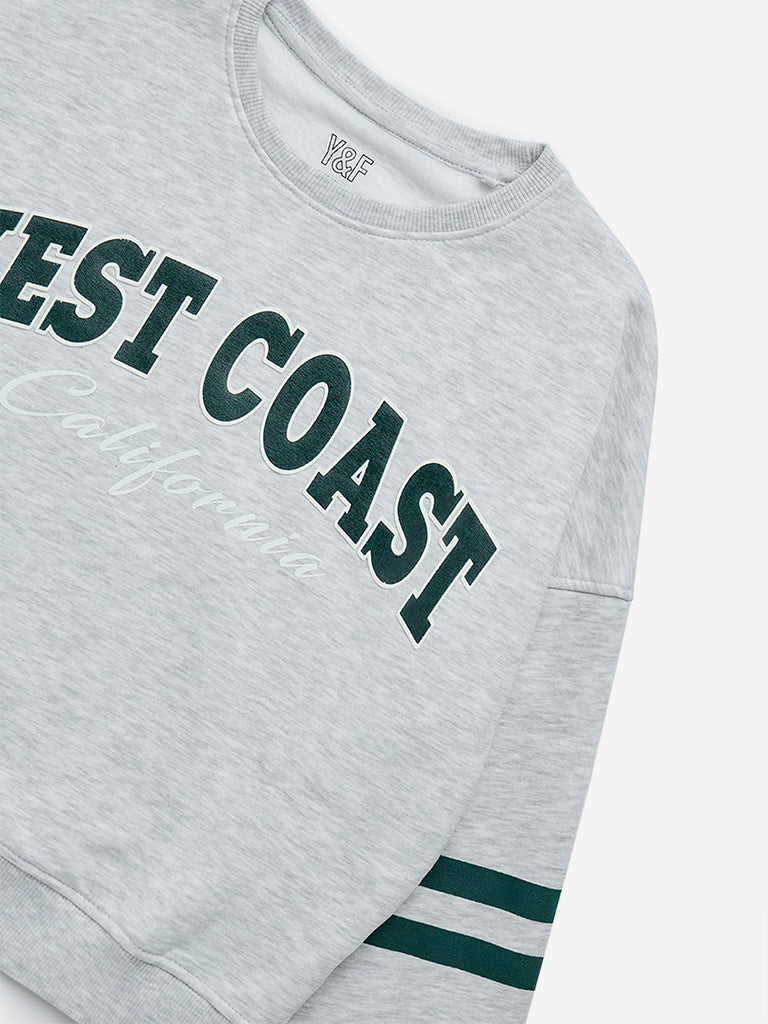 Y&F Kids Grey Text Design Cotton-Blend Sweatshirt
