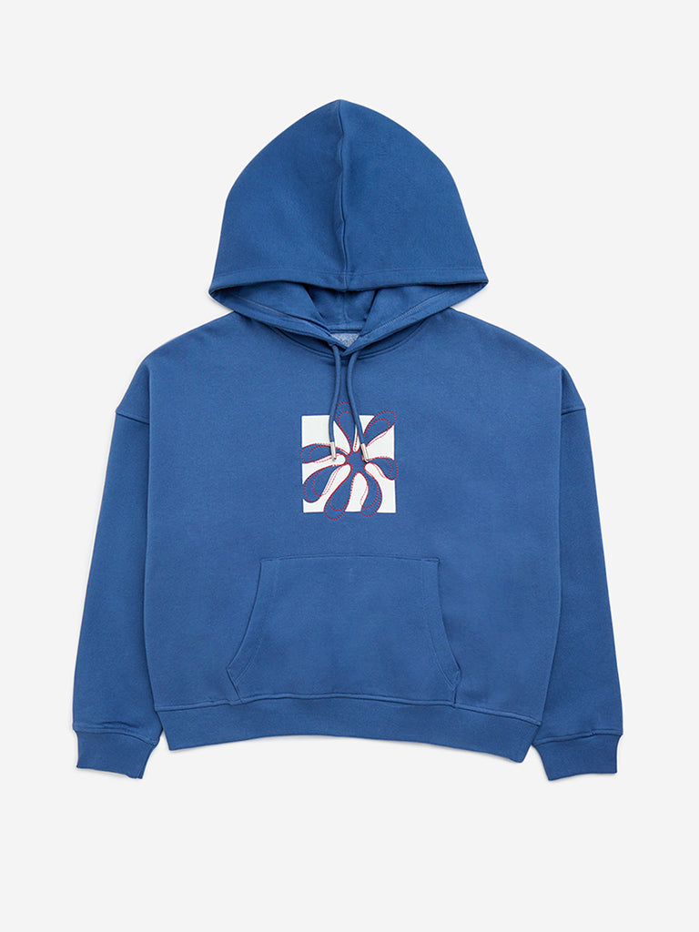 Y&F Kids Indigo Text Design Cotton-Blend Hoodie