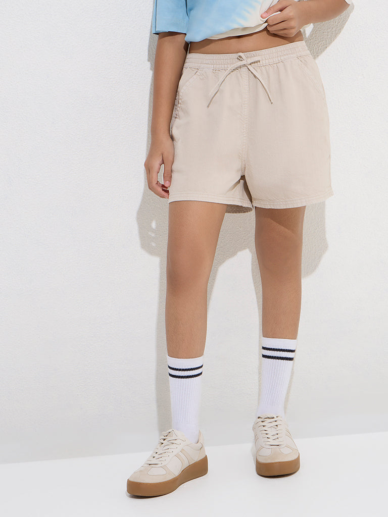 Y&F Kids Light Beige High-Rise Denim Shorts