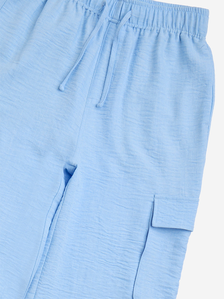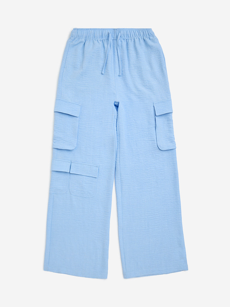 Y&F Kids Light Blue Crinkle-Textured High-Rise Trousers
