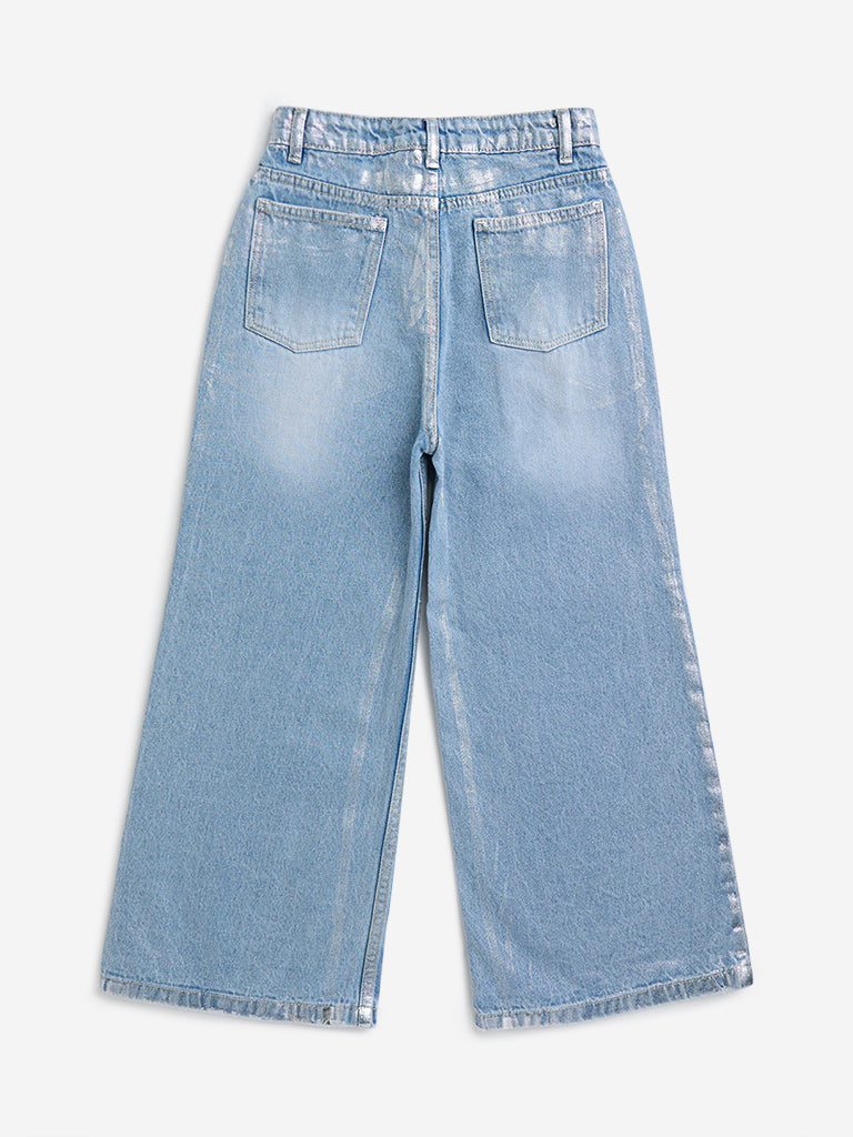 Y&F Kids Light Blue Foil-Detailed Relaxed-Fit High-Rise Jeans