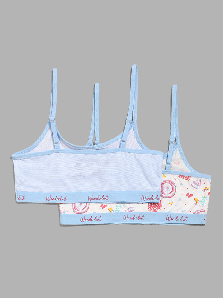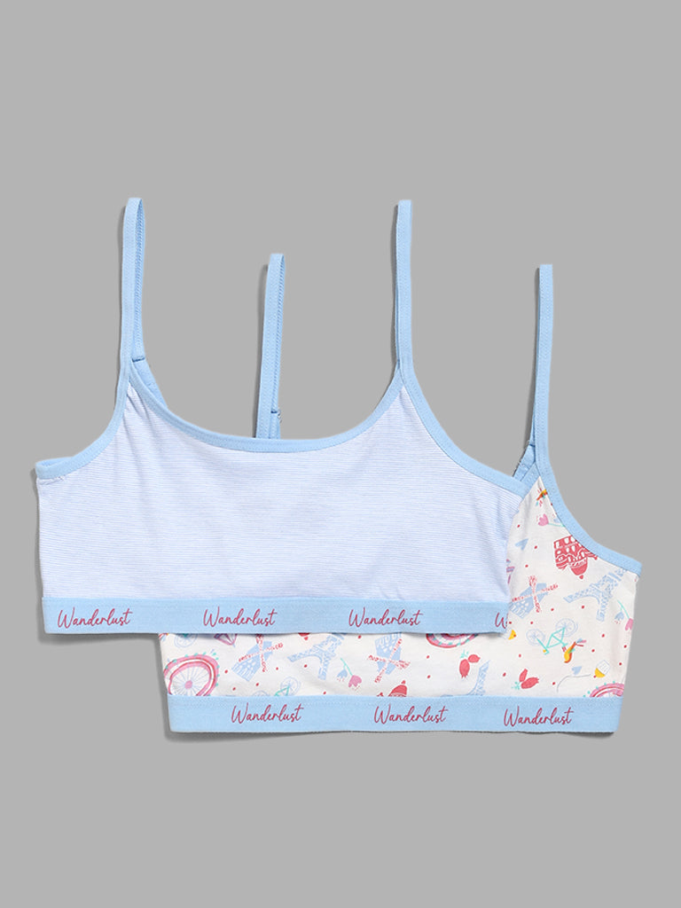 Y&F Kids Light Blue Graphic Printed Crop Tops – Pack of 2