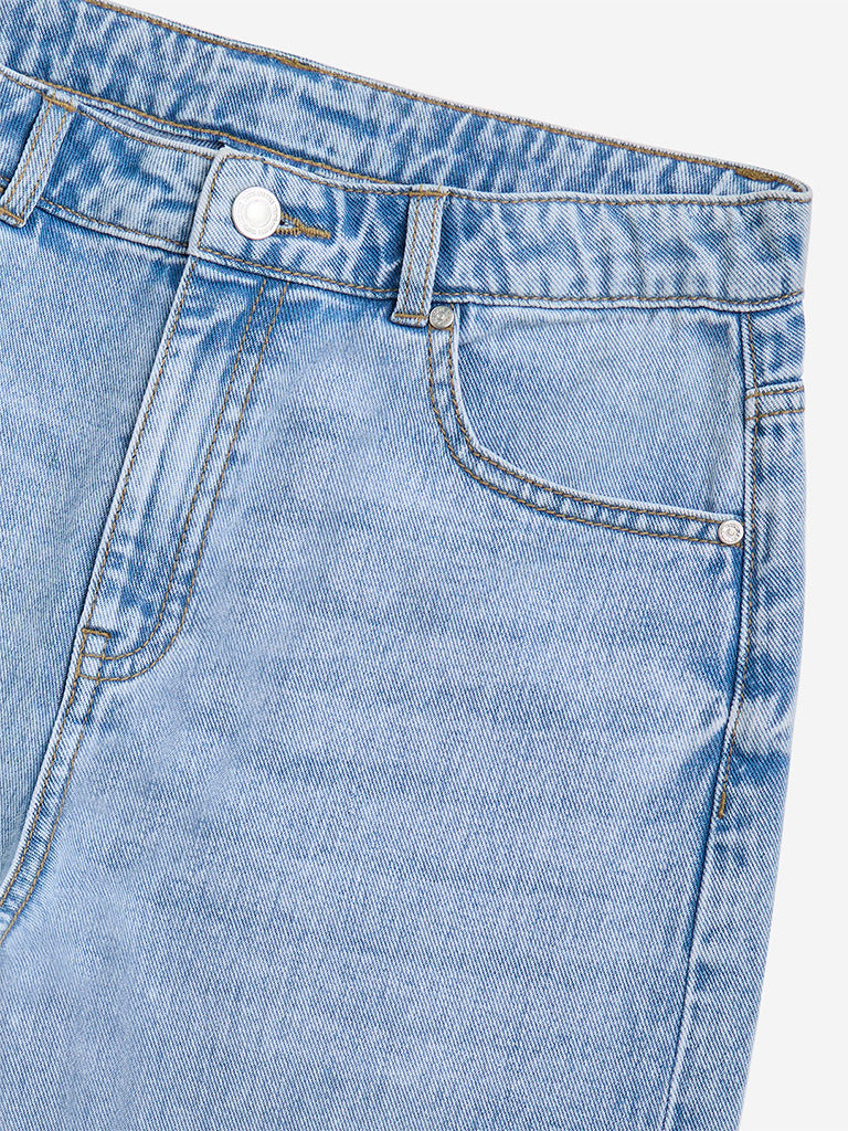 Y&F Kids Light Blue Slit Detailed Straight-Fit High-Rise Jeans