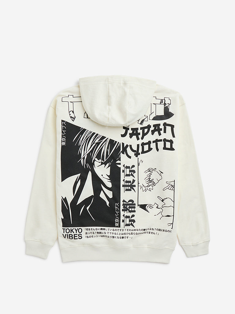 Y&F Kids Off-White Anime-Inspired Cotton-Blend Sweatshirt