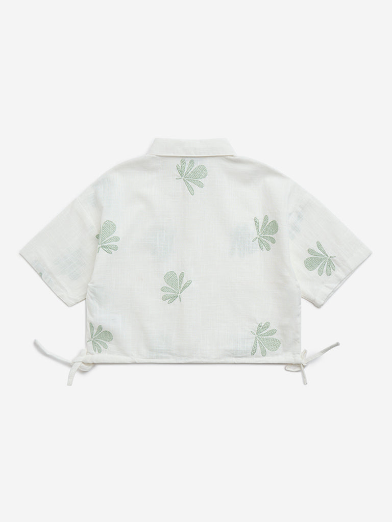 Y&F Kids Off-White Floral Embroidered Cotton Shirt