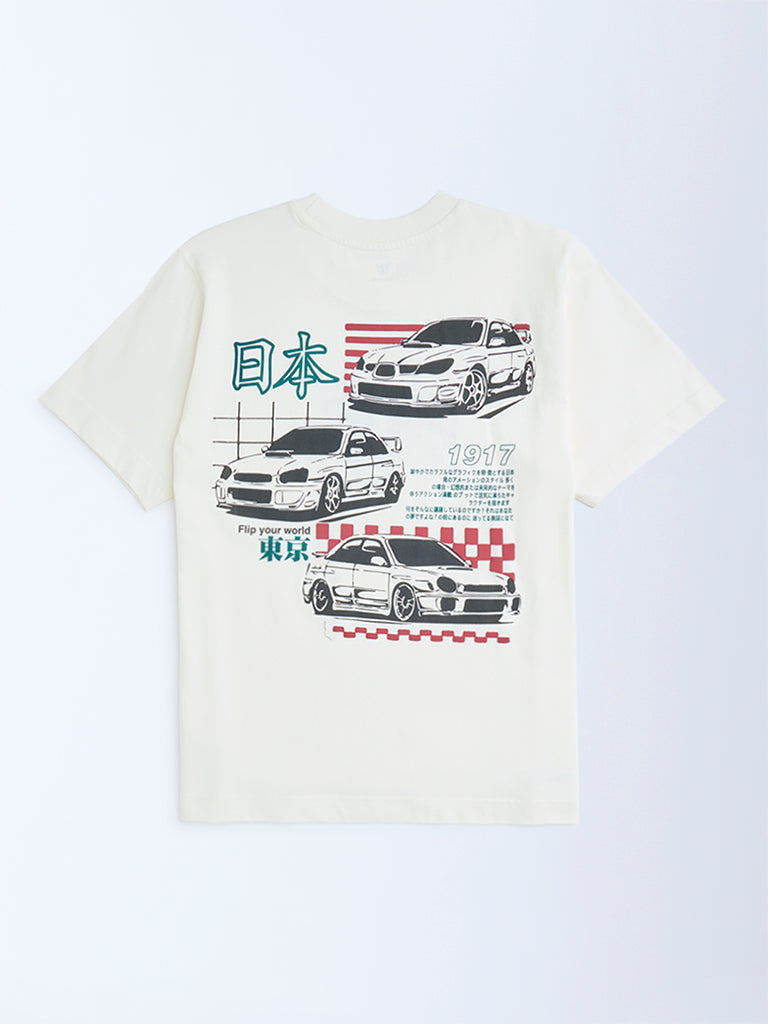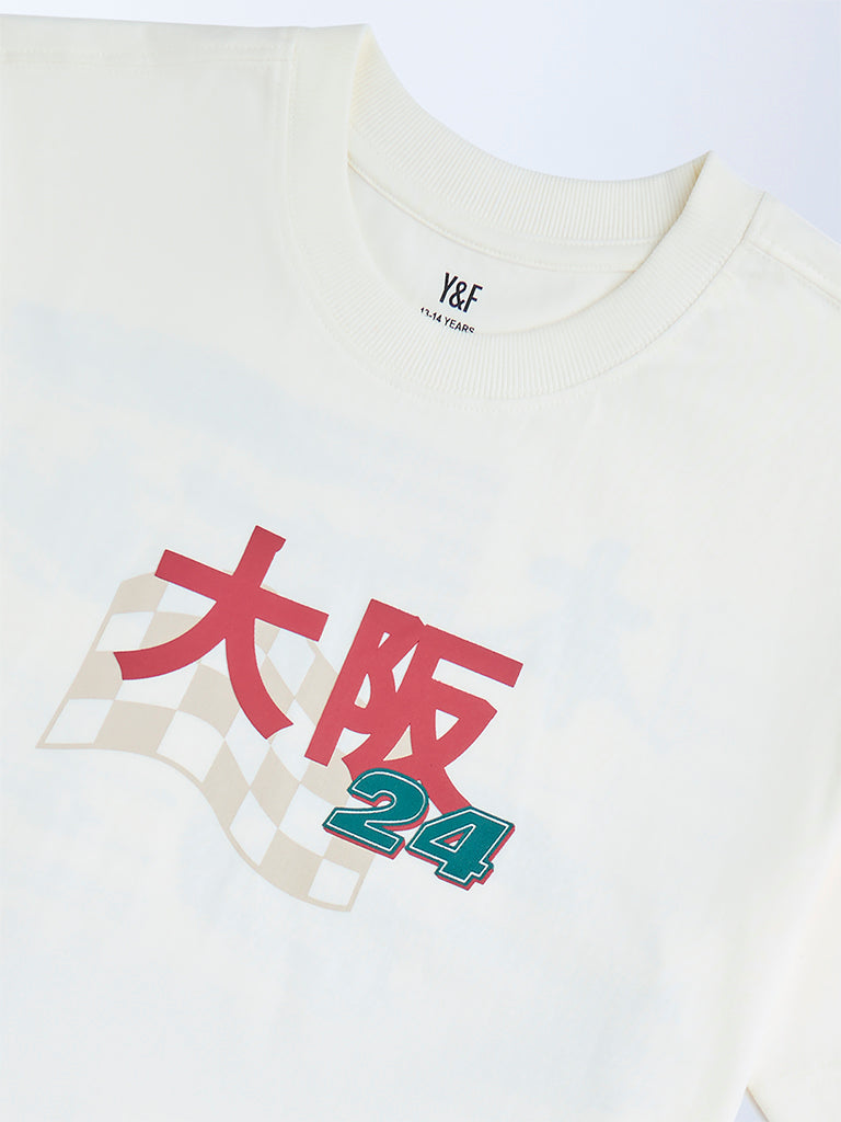 Y&F Kids Off-White Printed Cotton T-Shirt