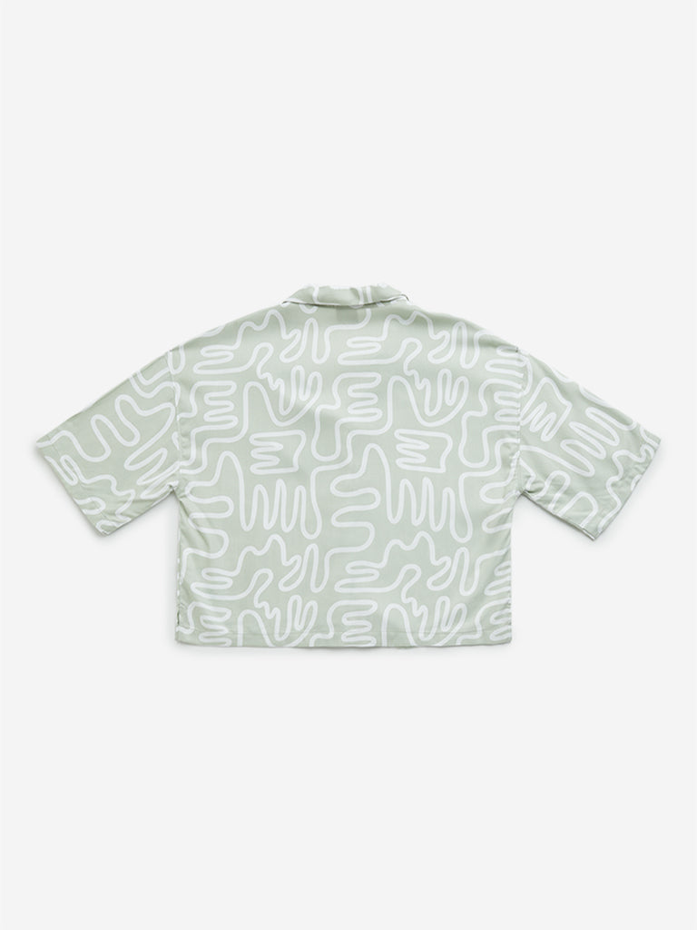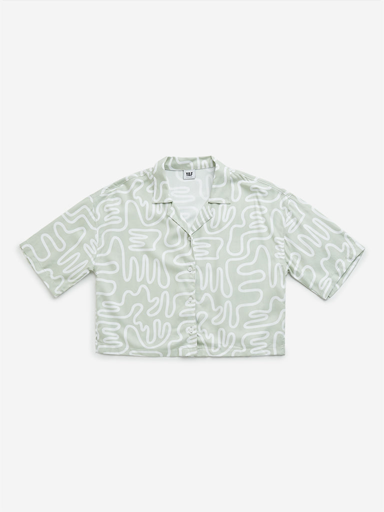 Y&F Kids Sage Abstract Print Cotton-Blend Cropped Shirt