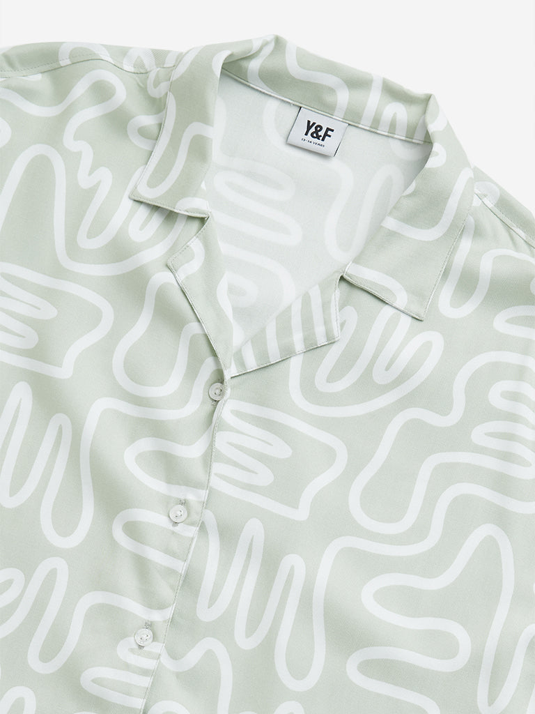 This sage shirt by Y&F kids features abstract patterns. Crafted from lightweight fabric. it includes a camp collar extending to a buttoned placket and half sleeves.