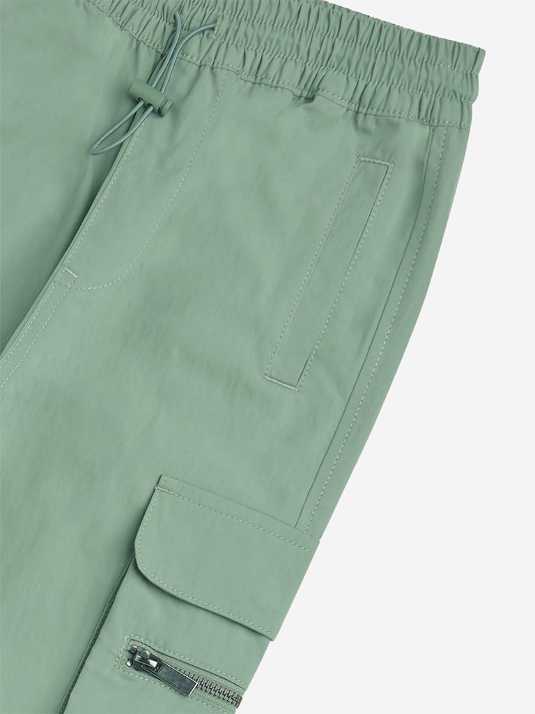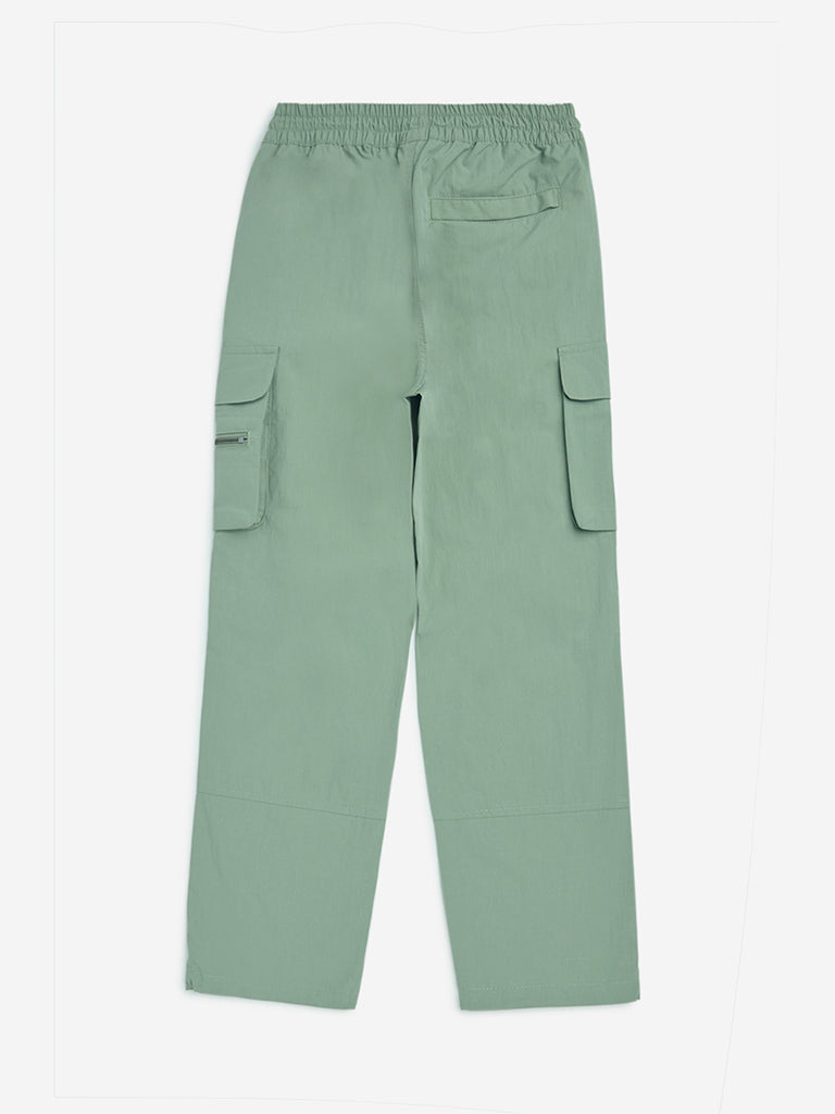 Y&F Kids presents these sage cargo pants. crafted from a soft cotton blend for comfort. Designed with a smooth elastic waistband and adjustable straps for a customized fit. they feature multiple utility pockets for a functional touch.