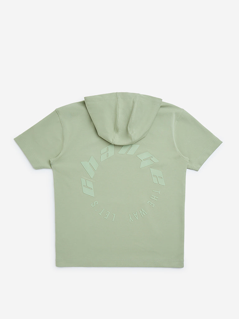 Y&F Kids Sage Text Design Relaxed-Fit Cotton-Blend Hoodie