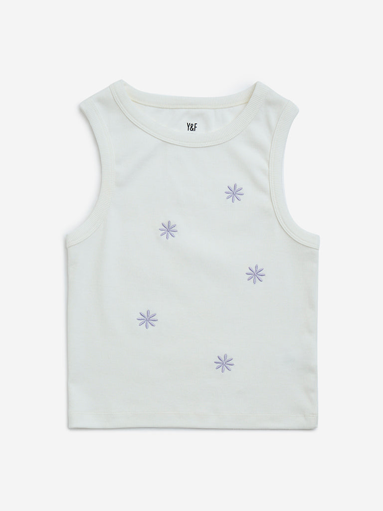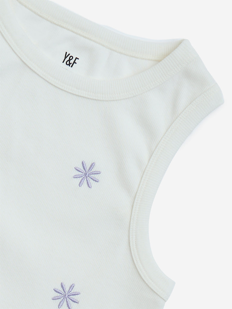 Y&F Kids White Floral Embroidered Cotton-Blend Top