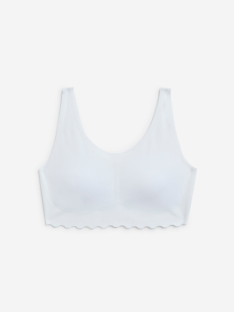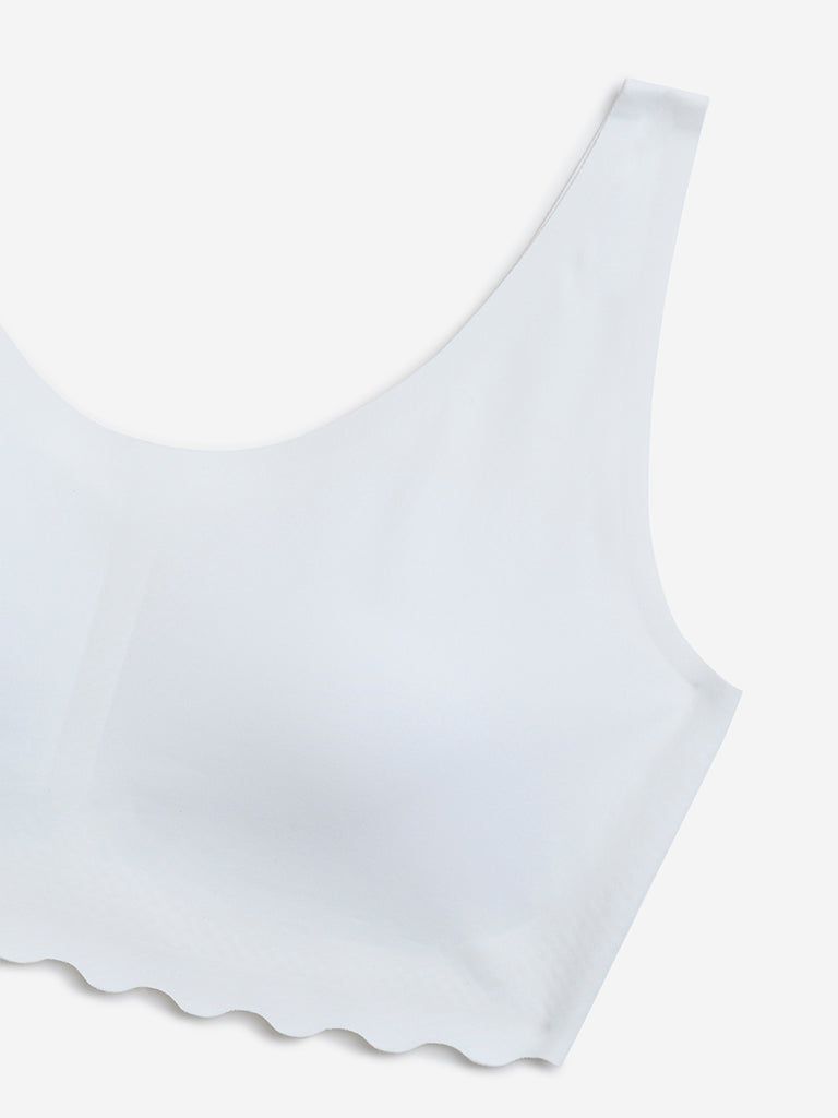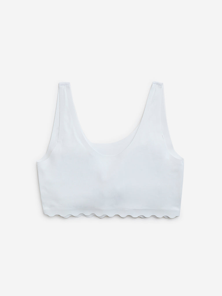 This white crop top from Y&F Kids is crafted from high-quality fabric for an ultra-soft feel. Designed for a seamless and invisible finish under clothing. it features lightly padded cups for gentle support. The scalloped hem adds a stylish and delicate touch.