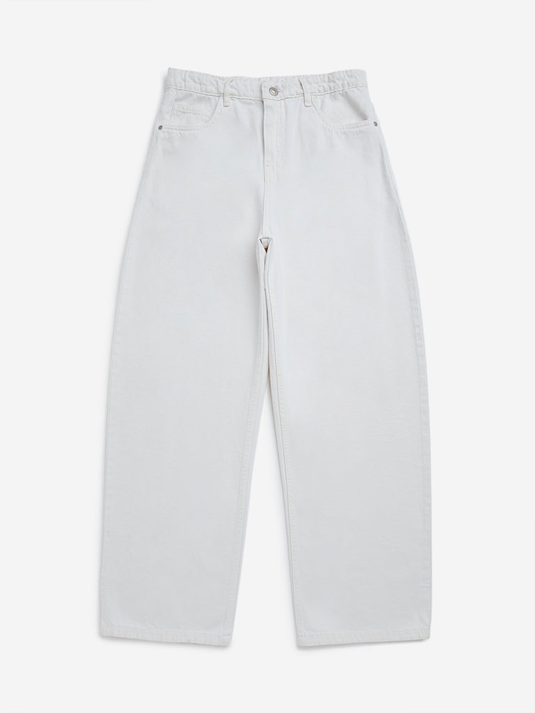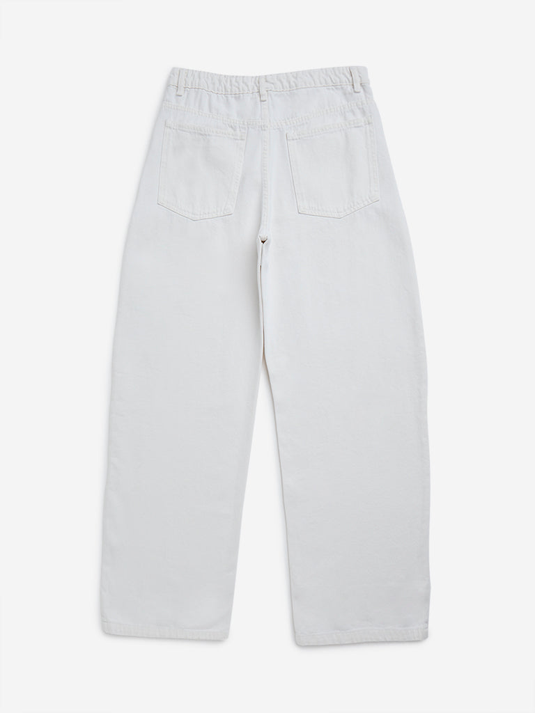 Y&F Kids White Straight-Fit High-Rise Denim Jeans