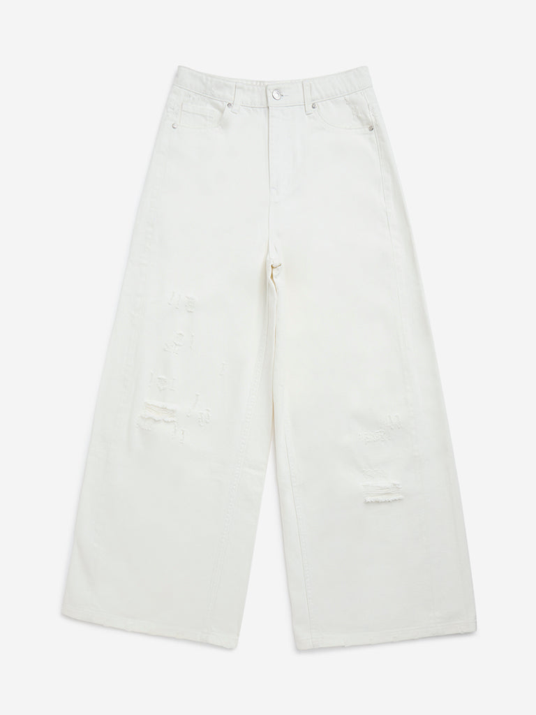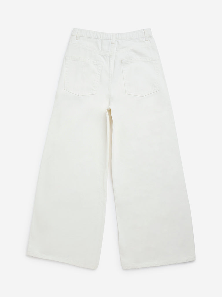 Y&F Kids White Straight-Fit High-Rise Jeans