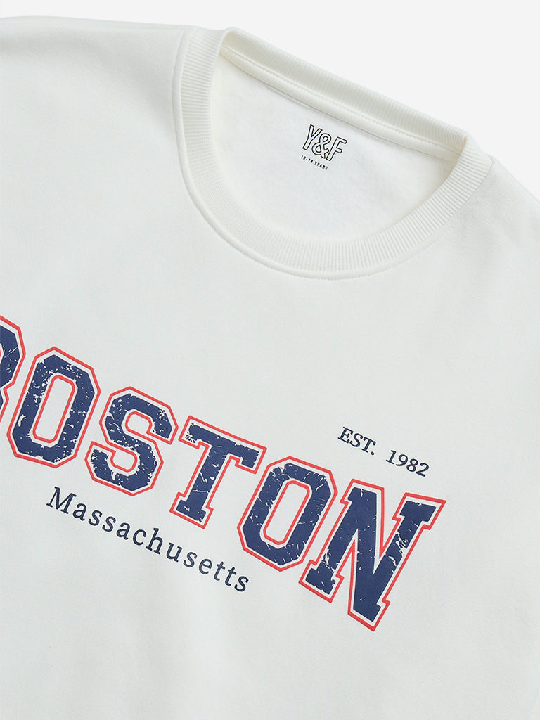 Y&F Kids White Text Design Cotton-Blend Sweatshirt