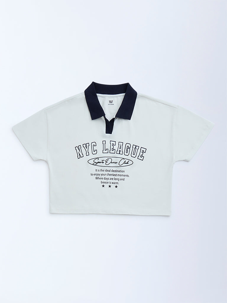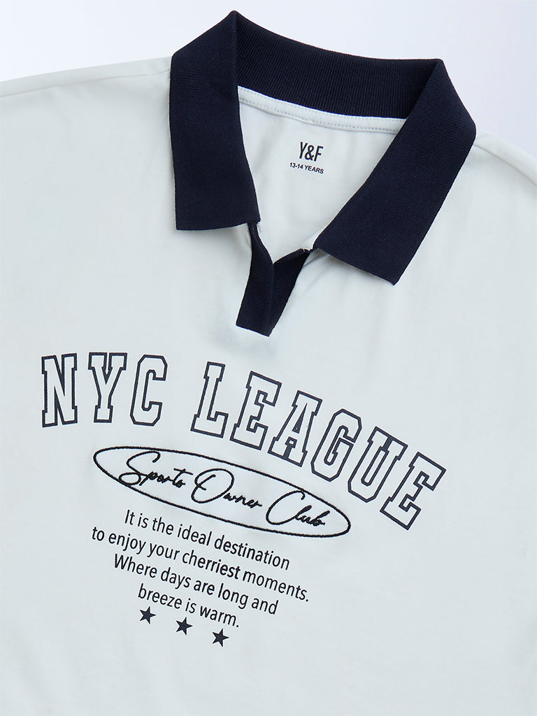 Y&F Kids White Text Detailed Cotton T-Shirt