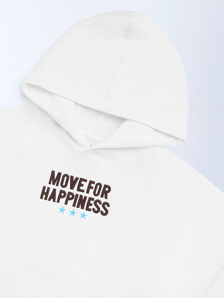 Y&F Kids White Text Printed Cotton-Blend Hoodie