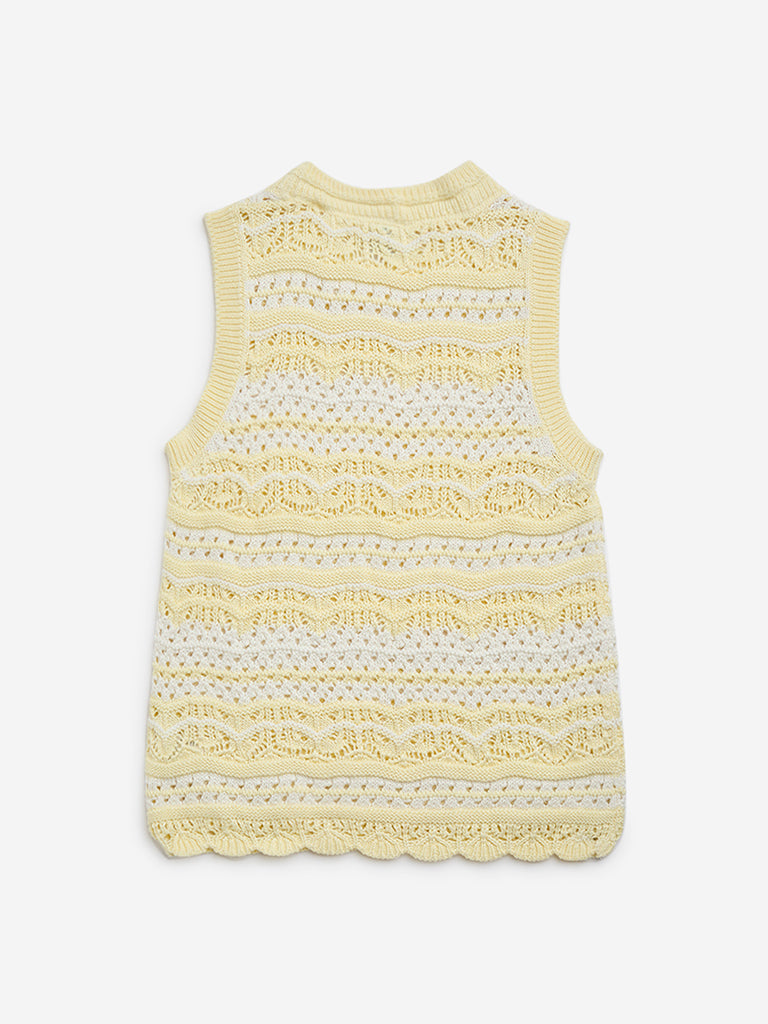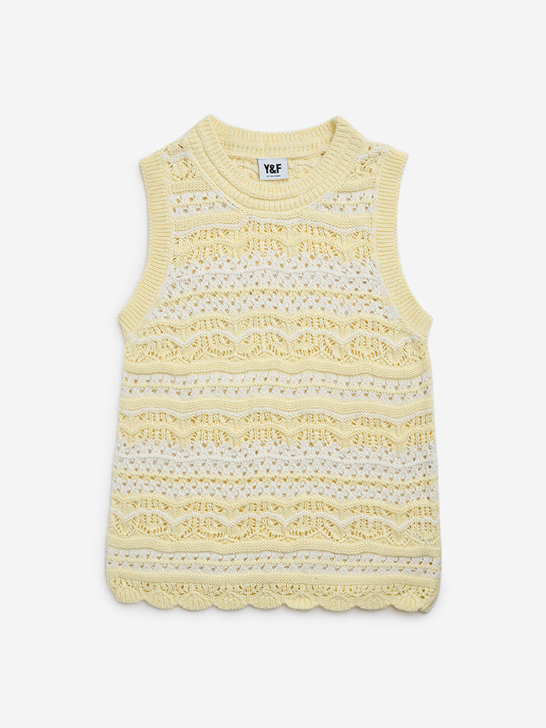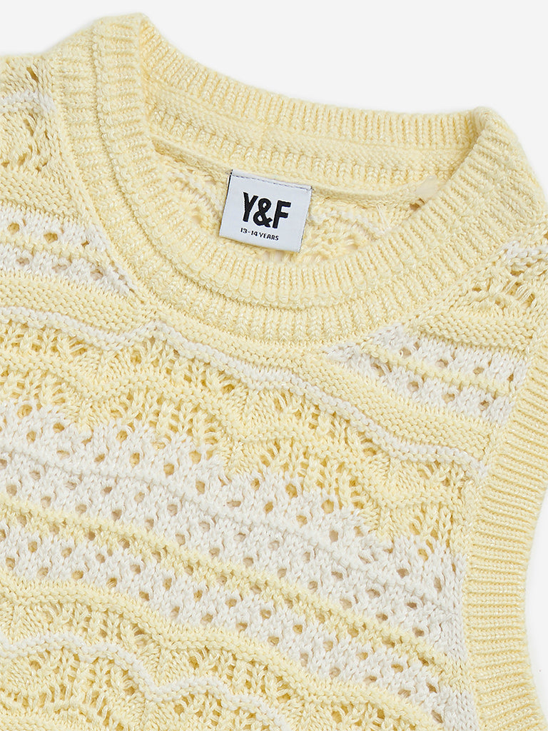 Y&F Kids Yellow Knit-Textured Cotton-Blend Top