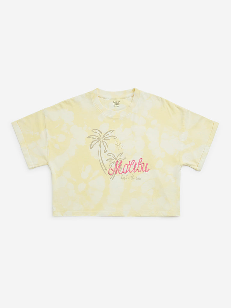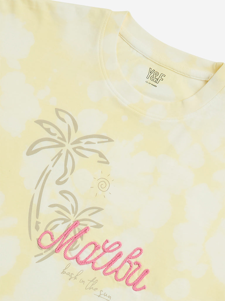Y&F Kids Yellow Tie-Dye Design Cotton T-Shirt