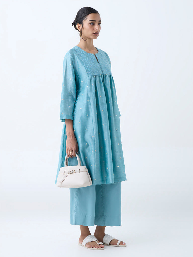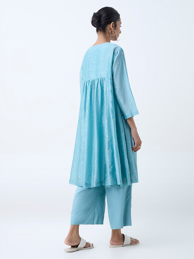 Zuba Aqua Embellished Cotton-Blend Anarkali Kurta with Inner