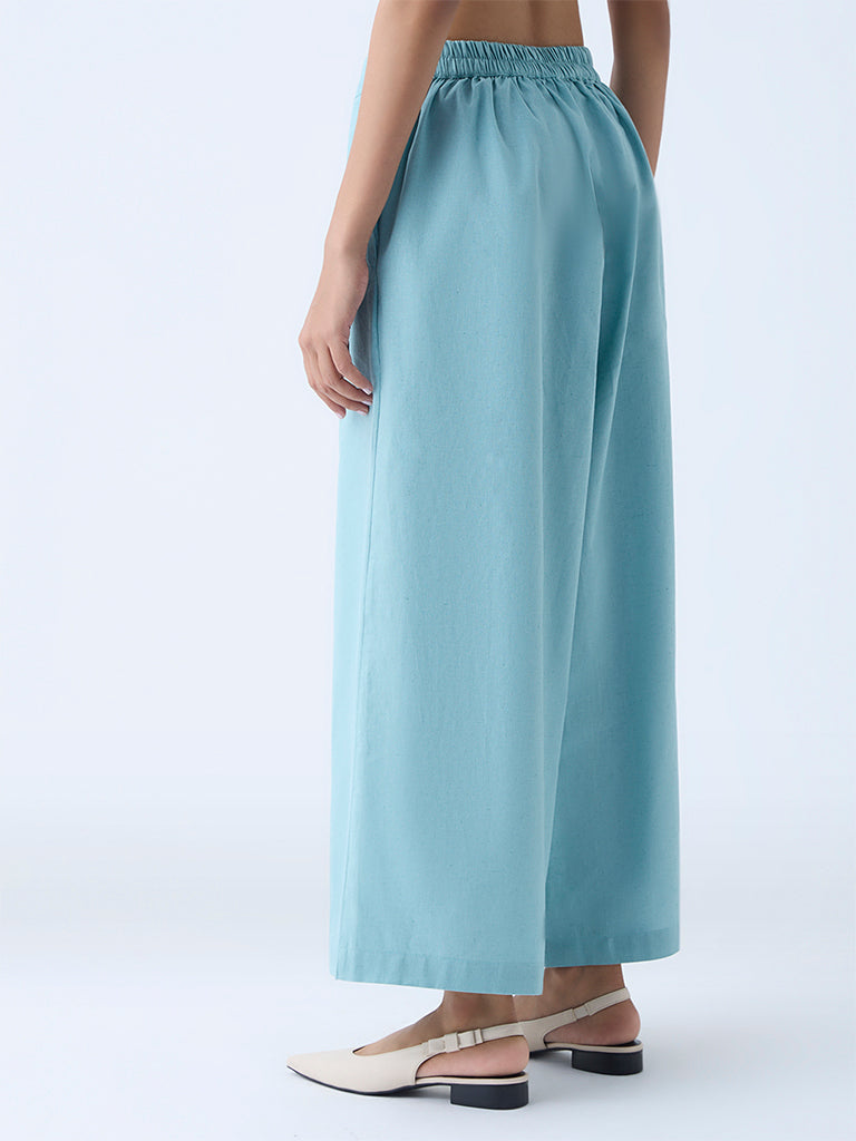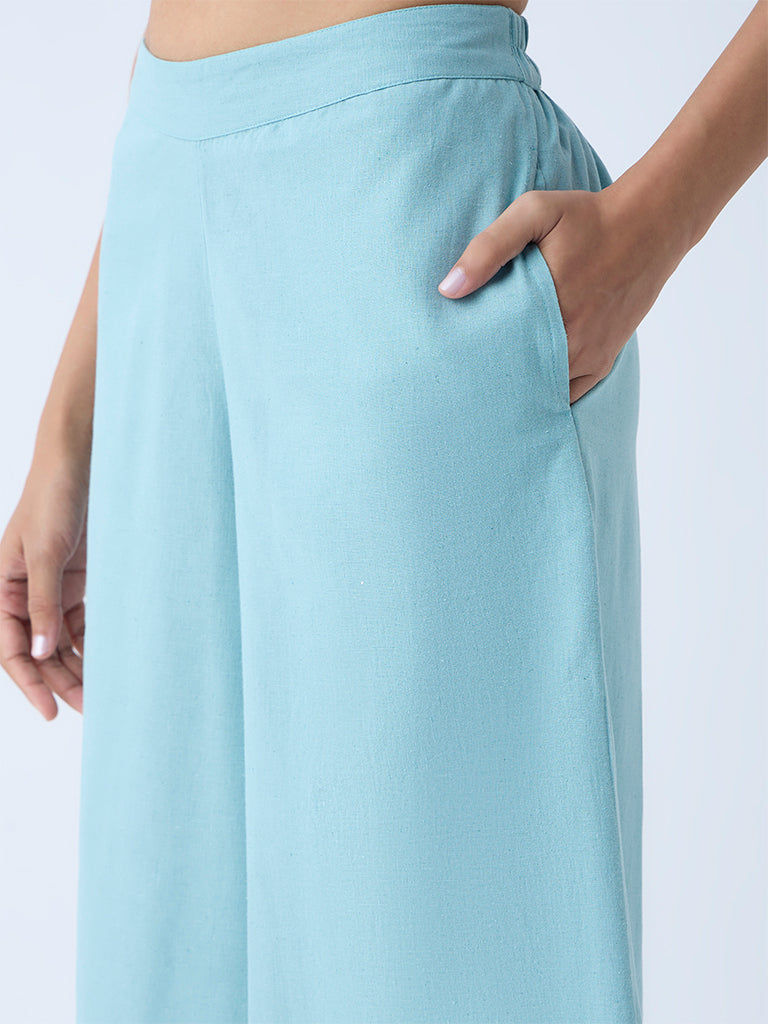 Zuba Aqua Solid Cotton-Blend Palazzos