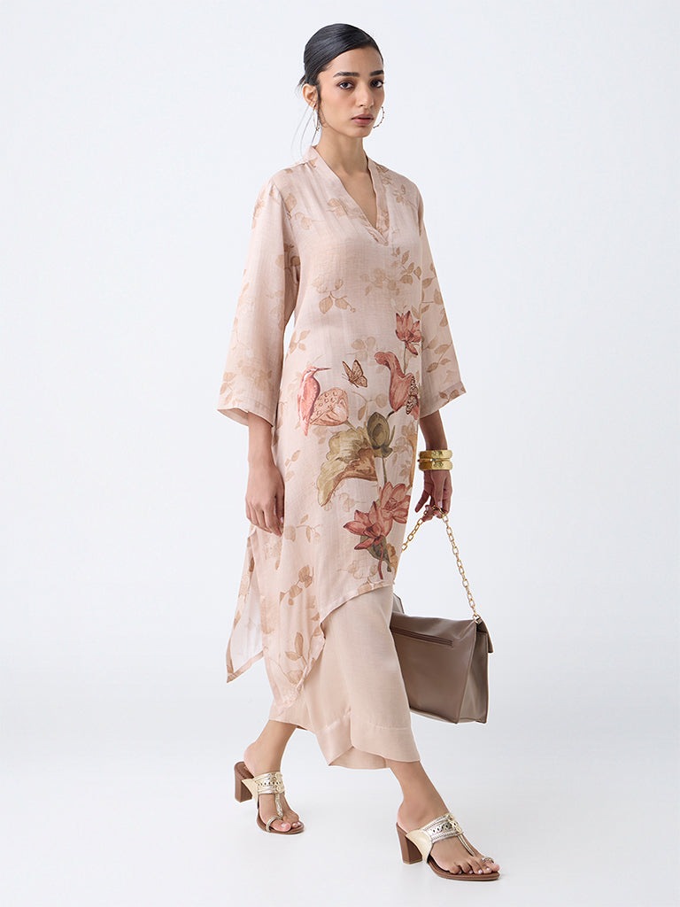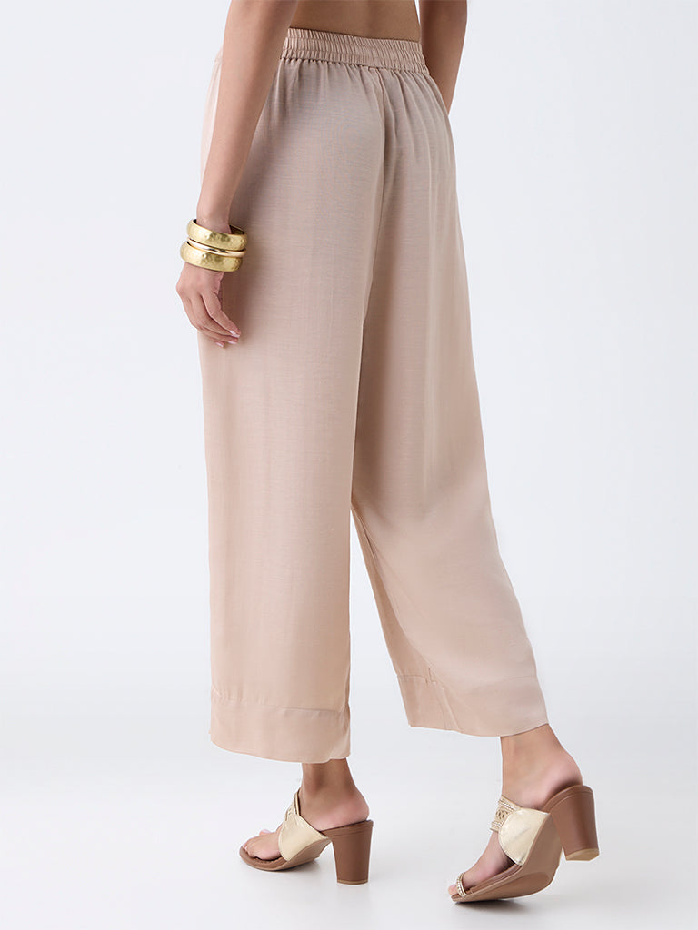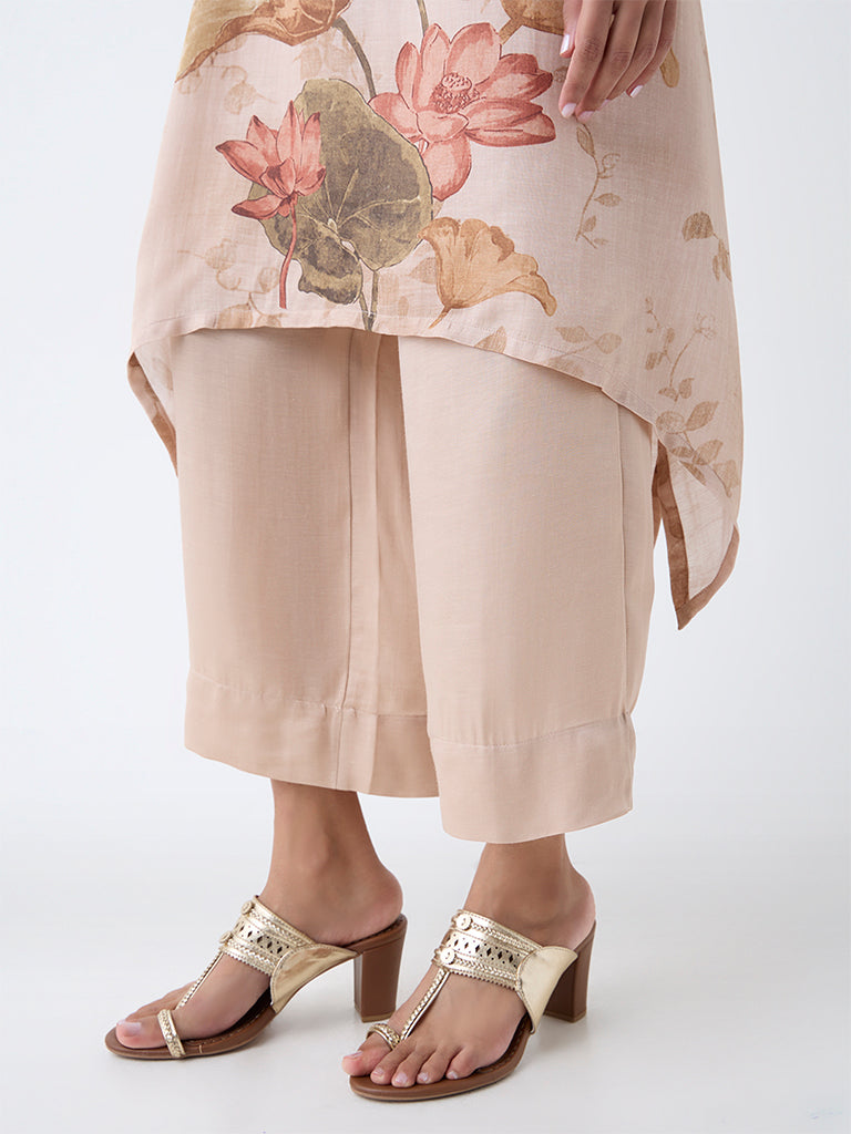 These beige ethnic pants from Zuba are a stylish staple for festive occasions. Woven from a premium linen-blend fabric. they feature a smooth elastic waistband that ensures an adjustable fit.