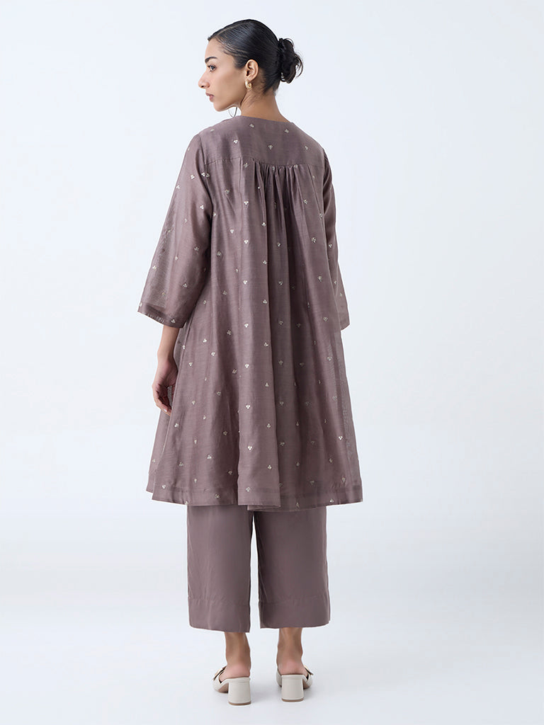 Zuba Brown Sequin Embellished Cotton-Blend A-Line Kurta with Inner