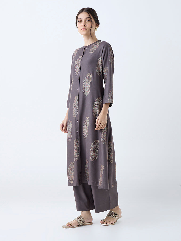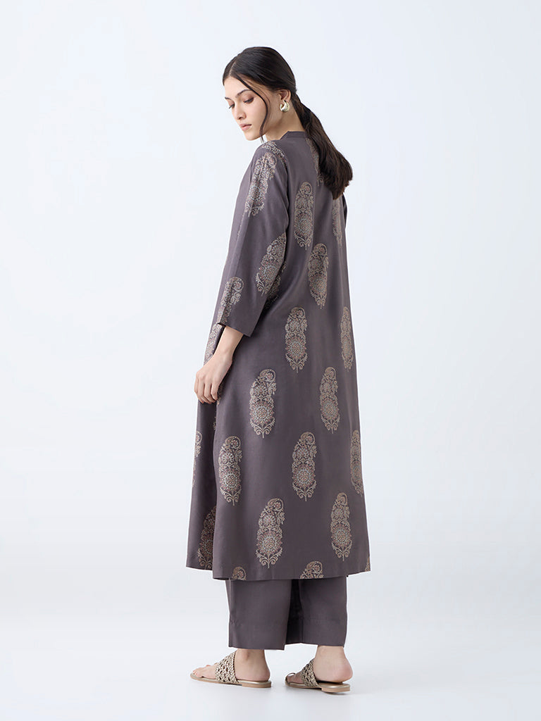Be the first to review “Zuba Charcoal Botanical Design A-Line Kurta”