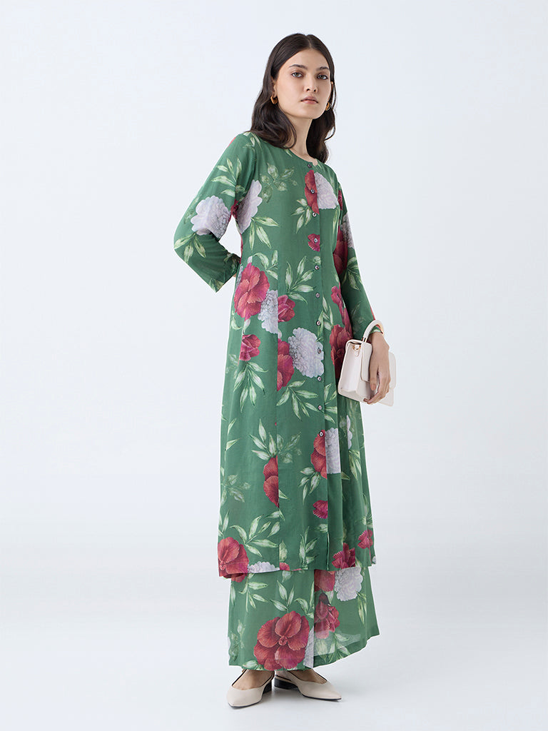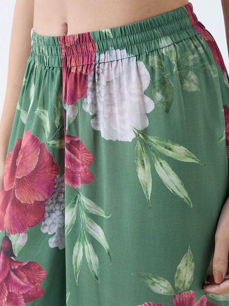 Be the first to review “Zuba Dark Green Floral Design Palazzos”