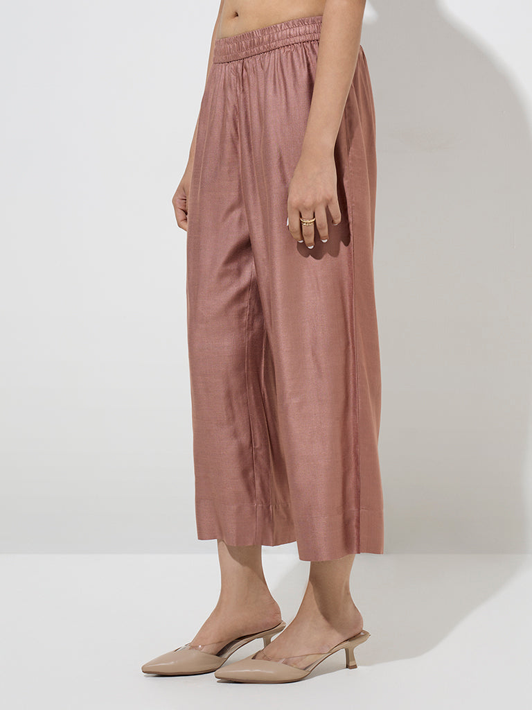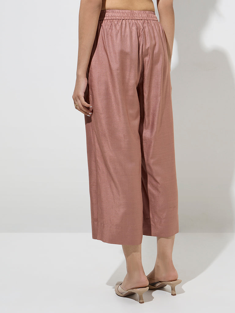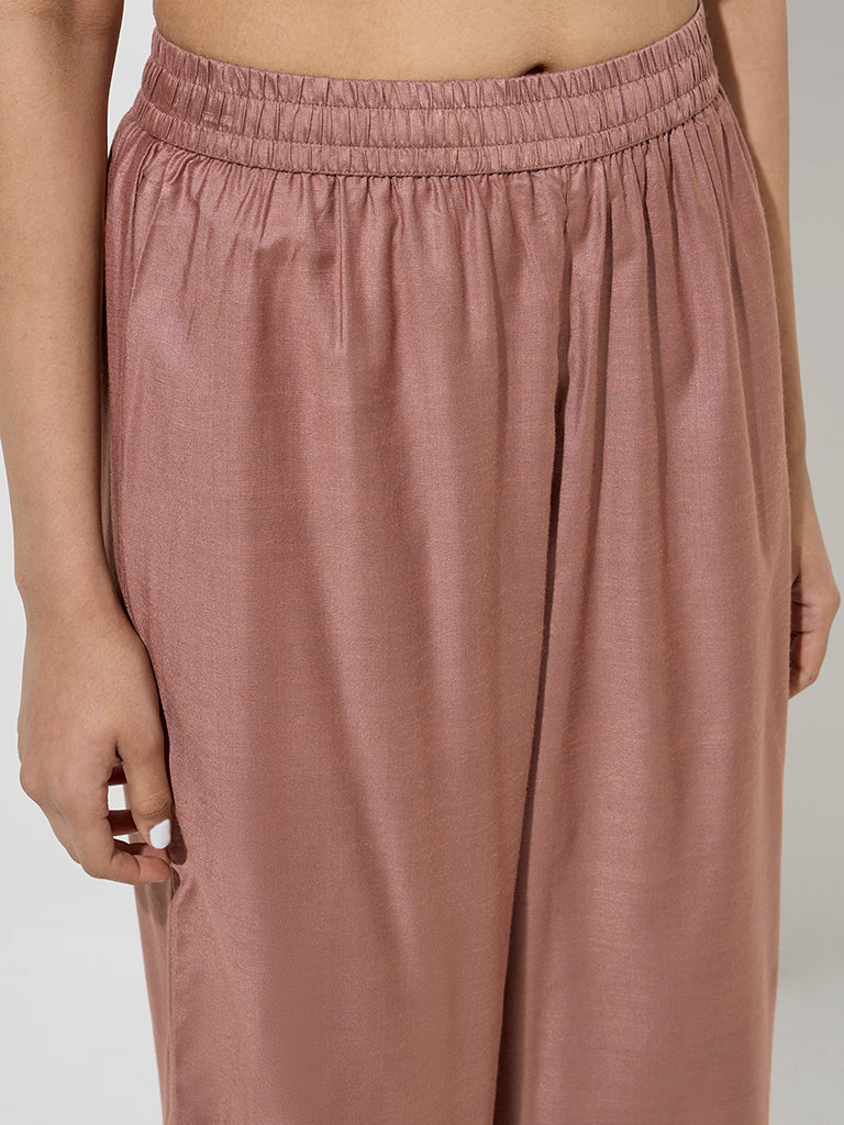 Zuba Dusty Pink Silk-Blend Ethnic Pants