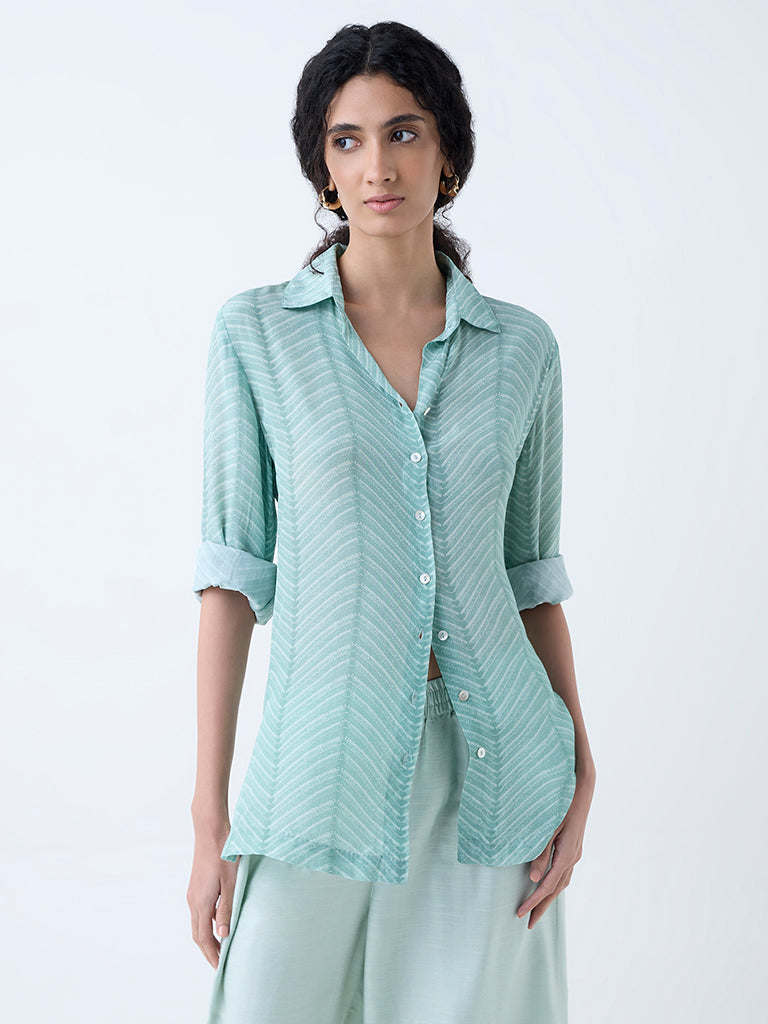 Zuba Green Chevron Design Ethnic Tunic