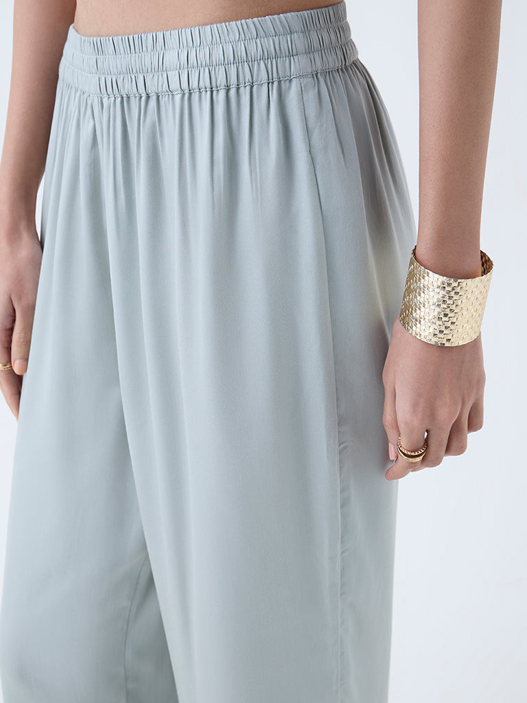 These light blue ethnic pants from Zuba are crafted from an ultra-lightweight fabric that ensures all-day comfort. Designed with an elasticated waistband and adjustable drawstrings. they offer an adjustable fit with effortless ease.