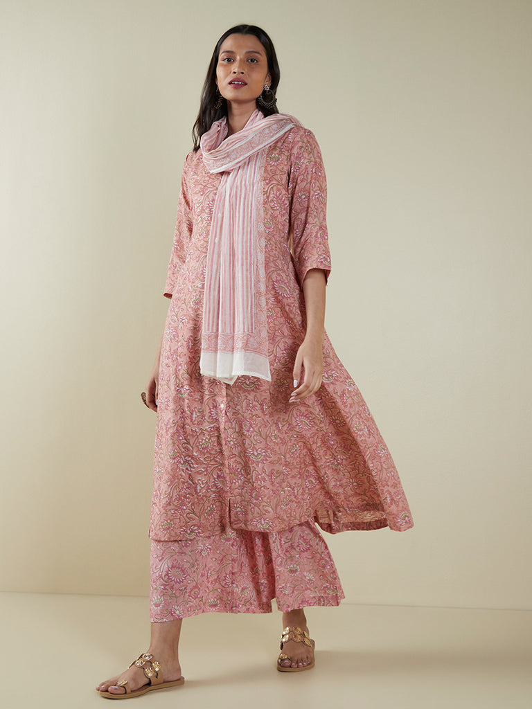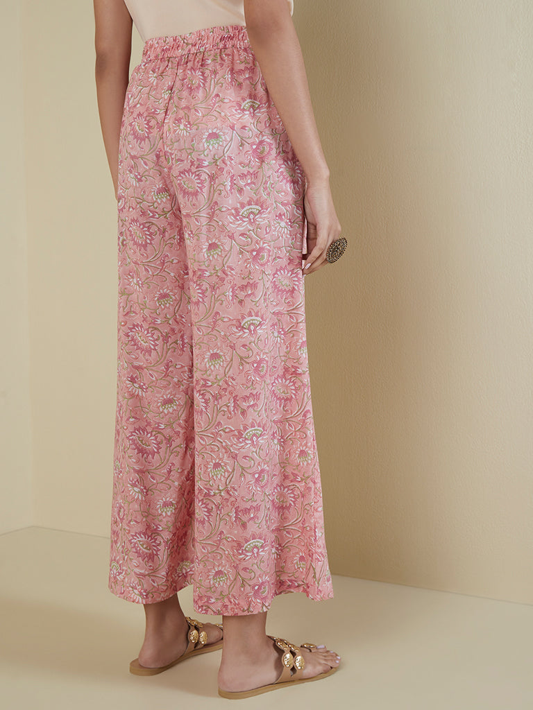 Zuba Light Pink Floral-Printed Flared Palazzos