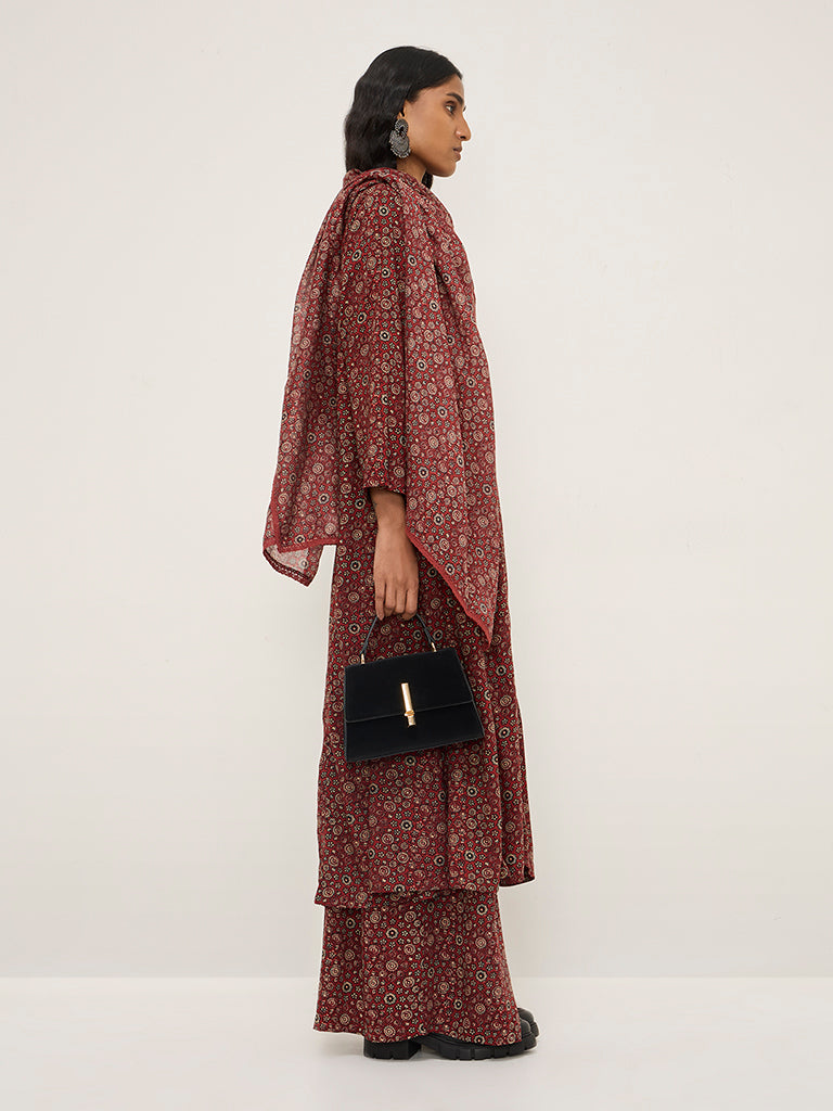Zuba Maroon Floral Printed High-Rise Ethnic Pants