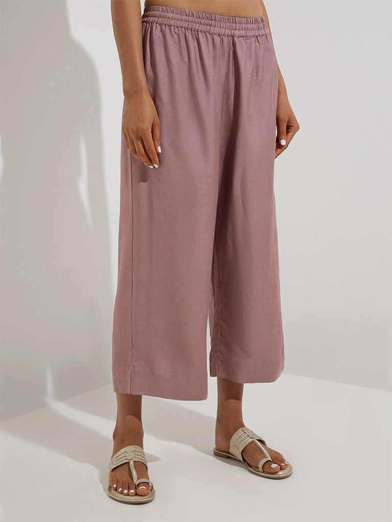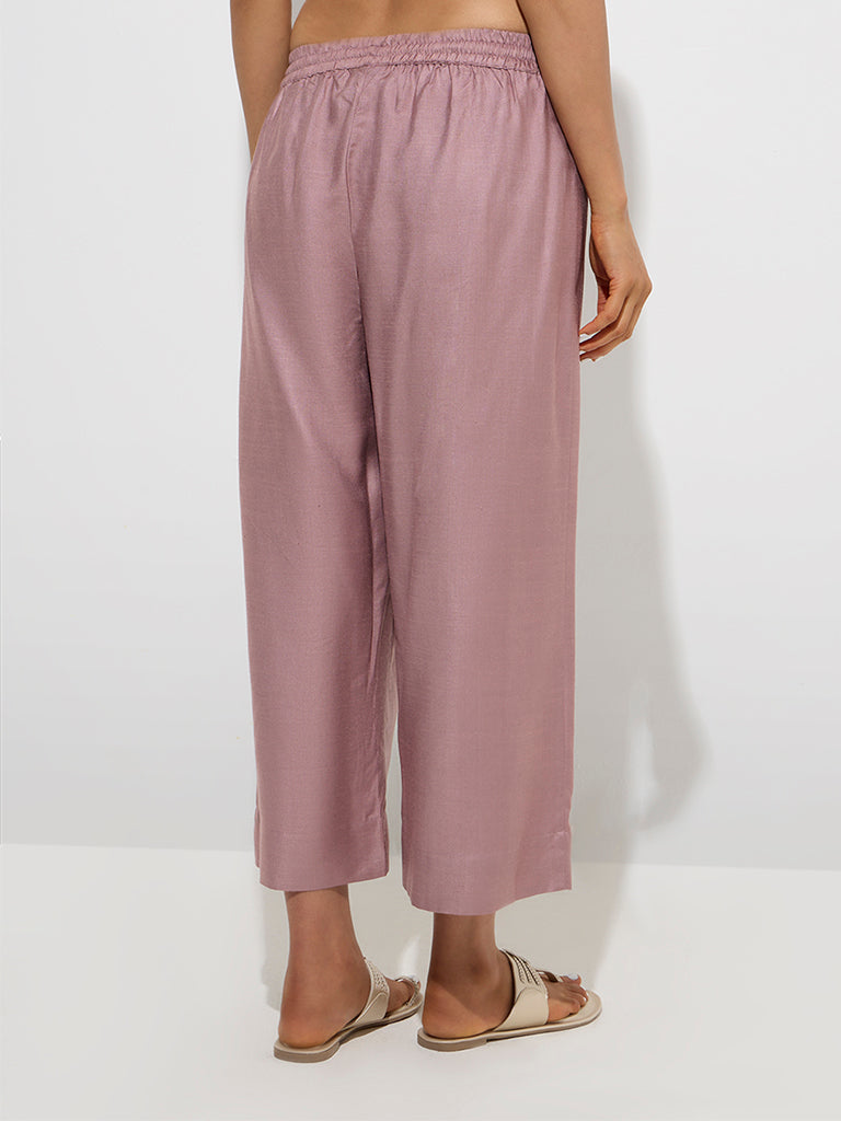Softly hued in mauve. these ethnic pants from Zuba are crafted from a rich silk-blend fabric that drapes beautifully while offering a gentle sheen. The elasticated waistband with adjustable drawstrings ensures a personalised fit.