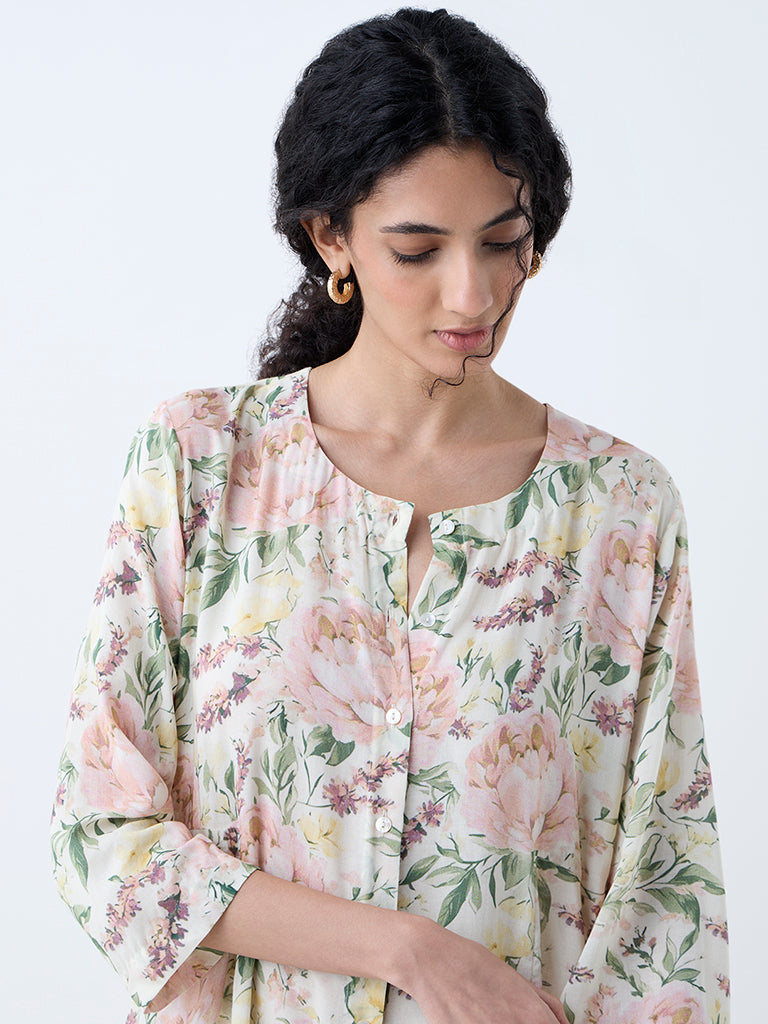 Zuba Multicolour Floral Pattern A-Line Kurta