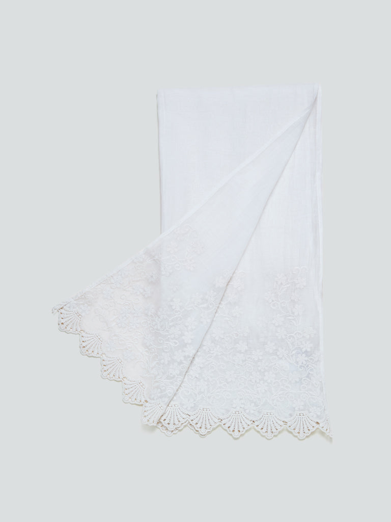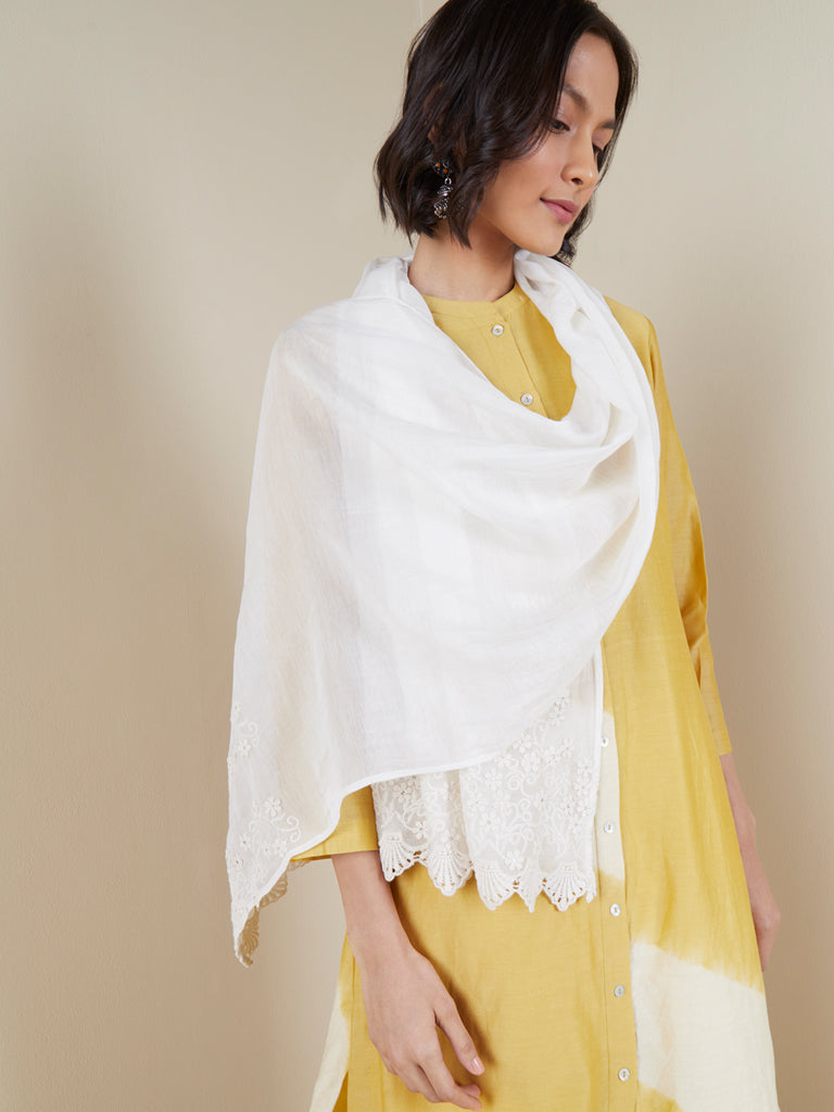 Zuba Off-White Silk Blend Embroidered Cotton-Blend Stole