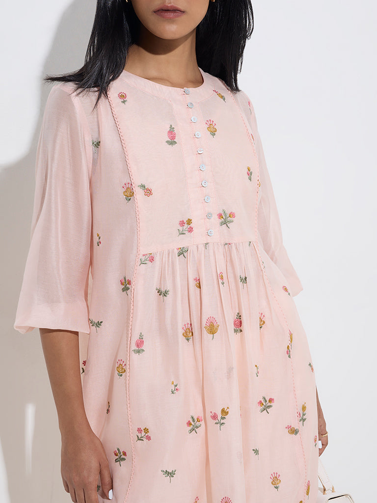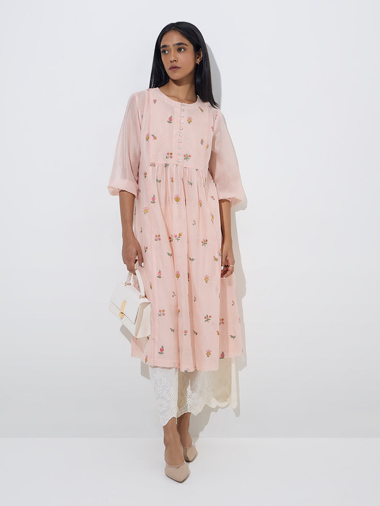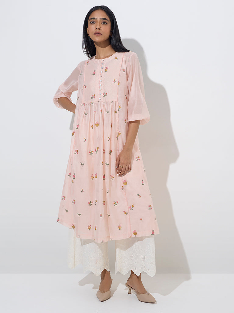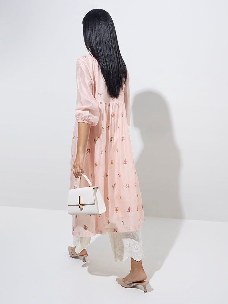 Zuba Peach Floral Embroidered A-Line Kurta with Inner