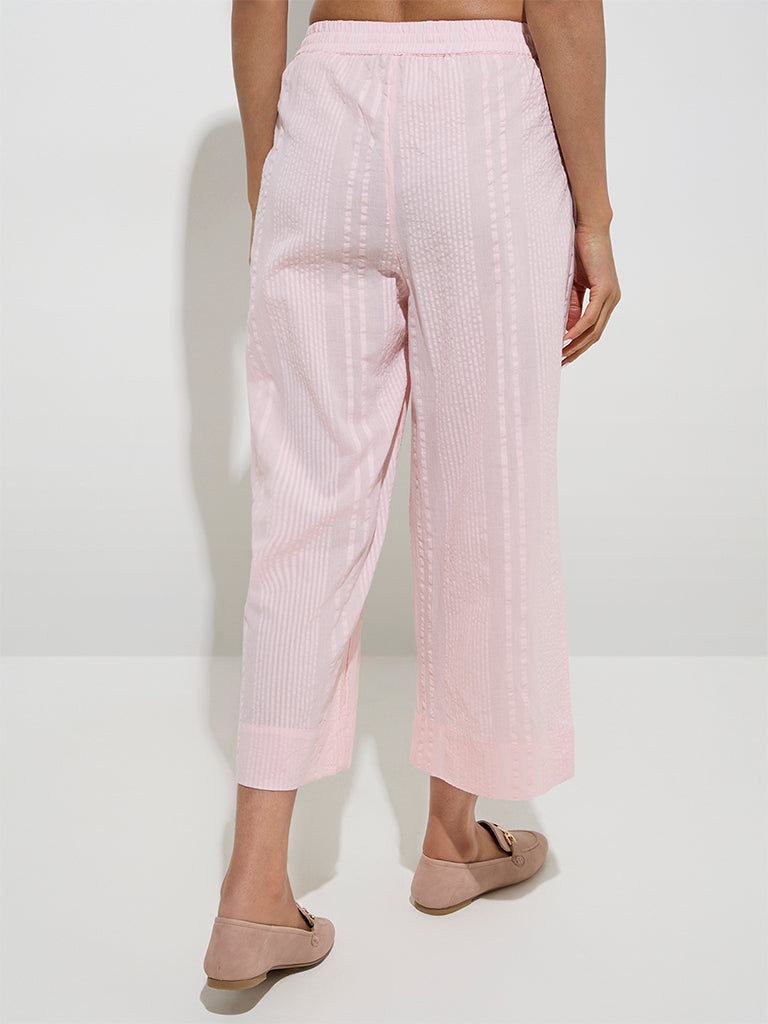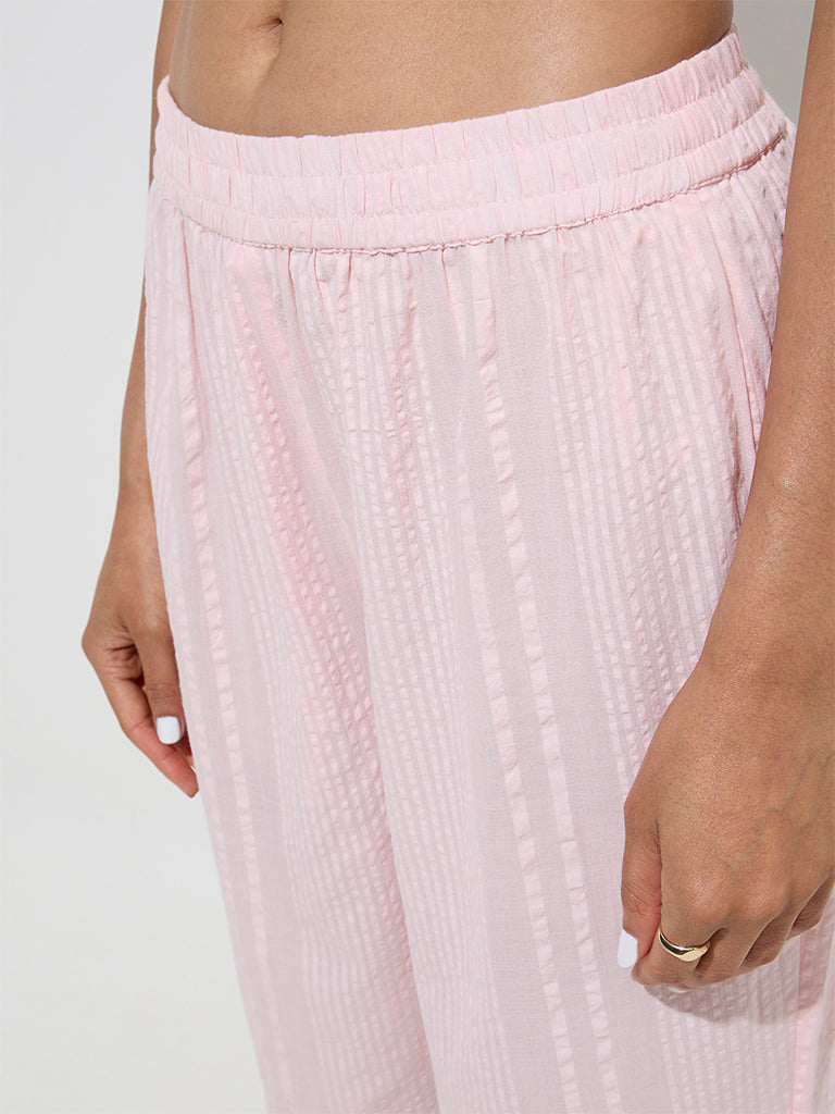 Zuba Pink Seersucker Striped Cotton Ethnic Pants