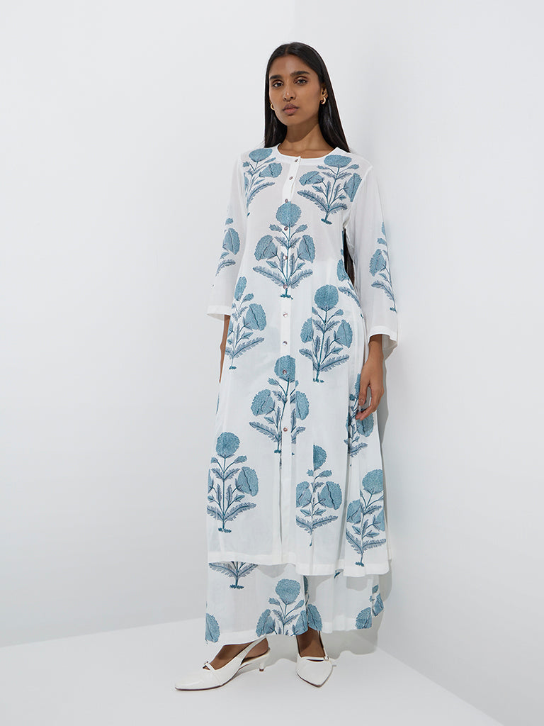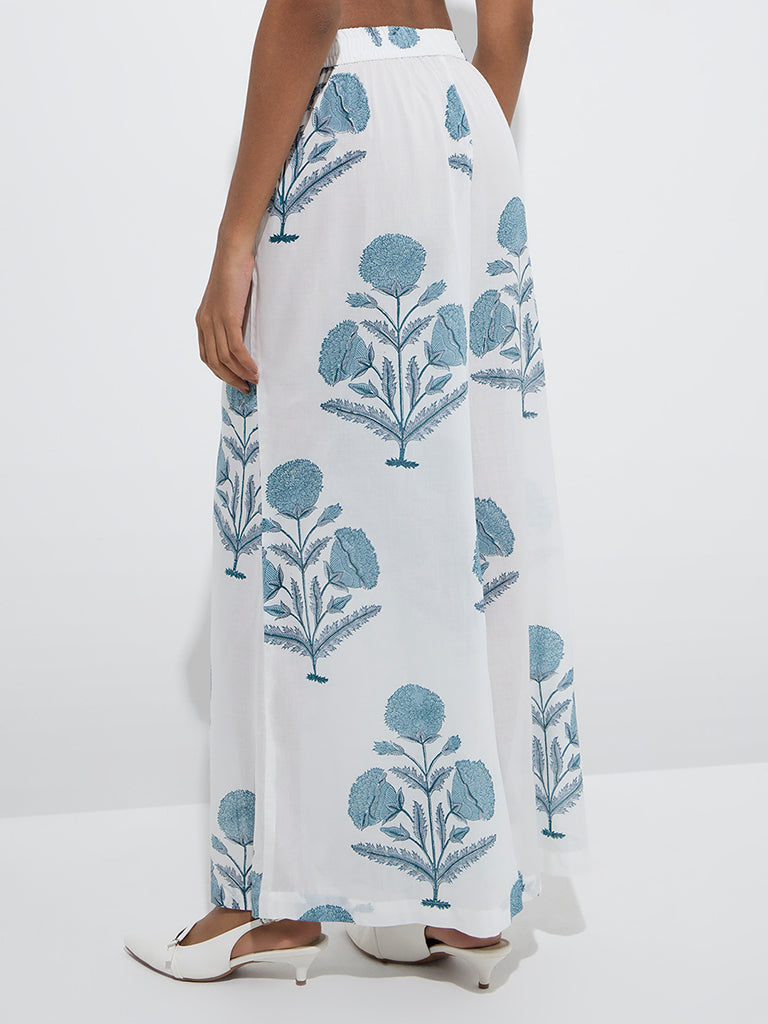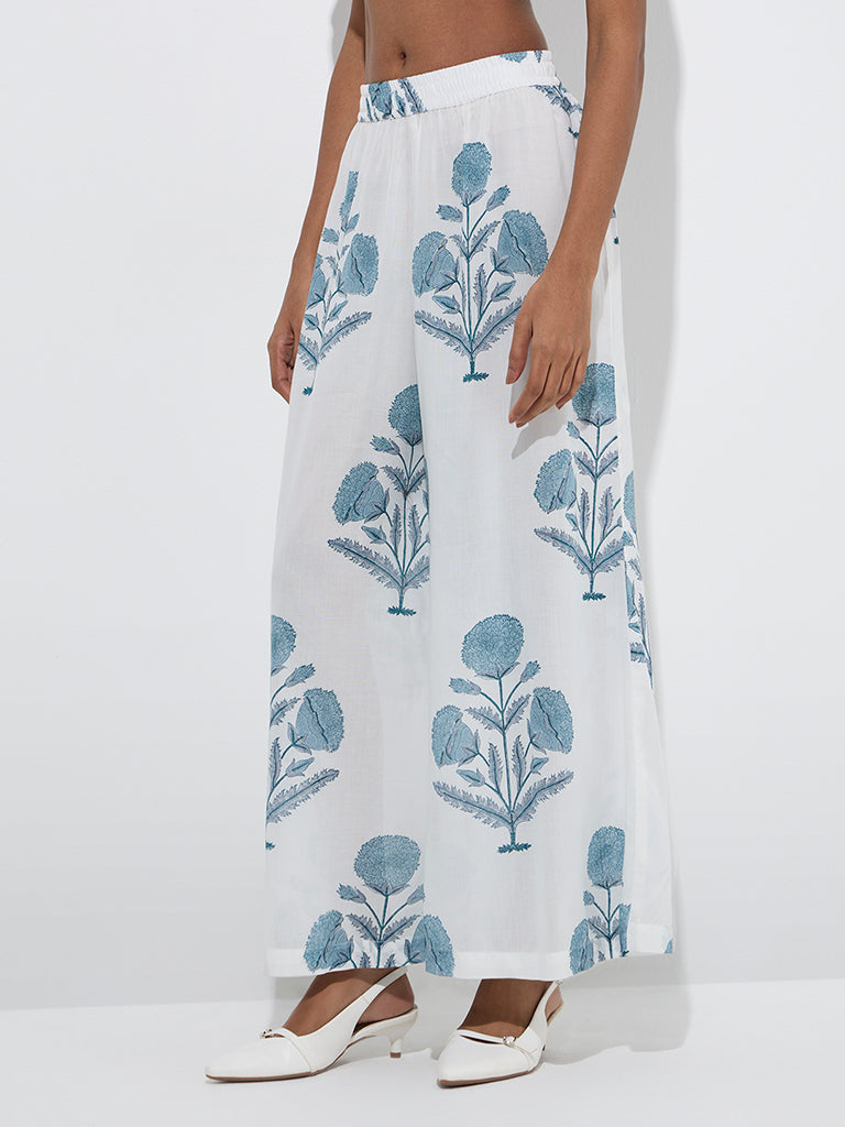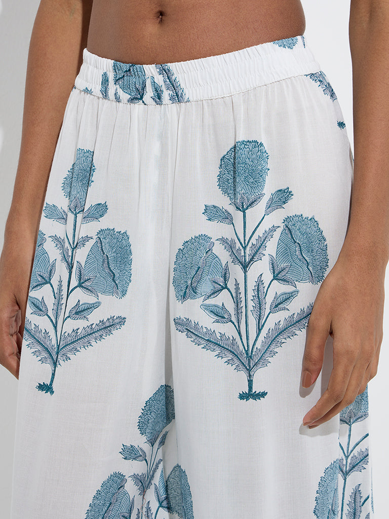 Flowing in crisp white. these Zuba palazzos showcase delicate Mughal butta prints that whisper timeless elegance. The ultra-lightweight fabric drapes softly. keeping you cool and comfortable. With an elasticated waistband and adjustable drawstrings. they promise a perfect fit tailored to your comfort.