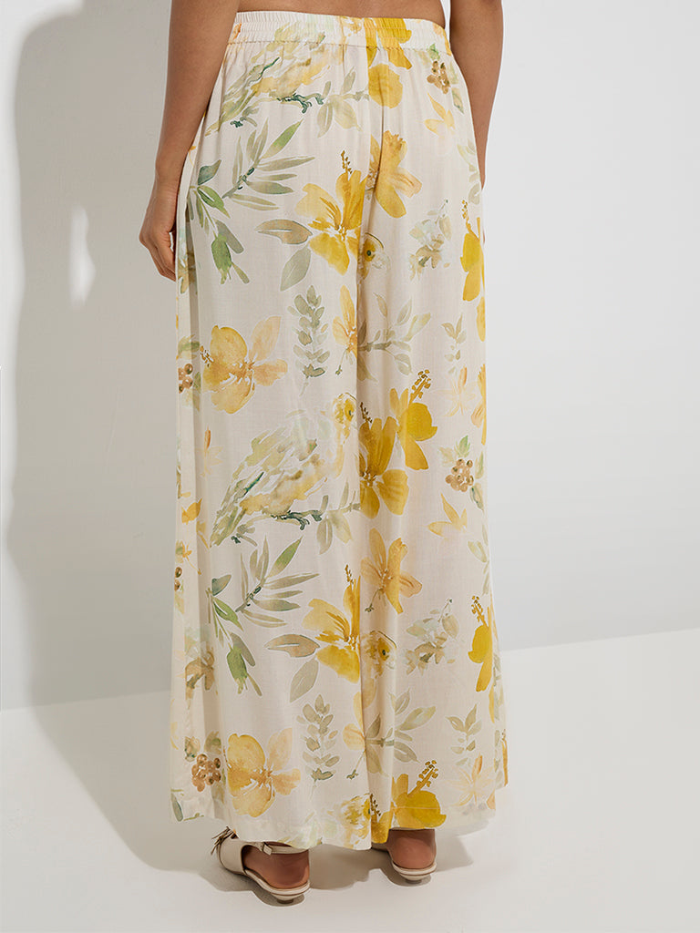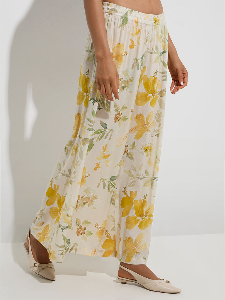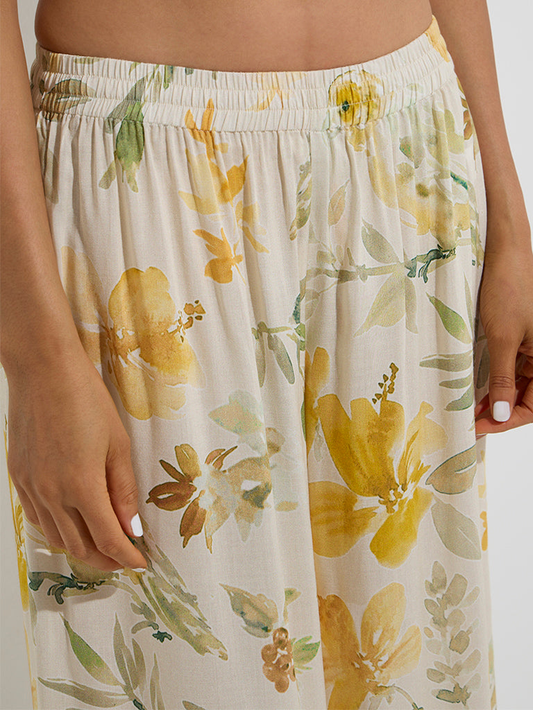 These yellow palazzos from Zuba are elevated with bright floral prints. Woven from a breathable fabric. they’re designed with an elasticated waistband and adjustable drawstrings for a comfortable fit.